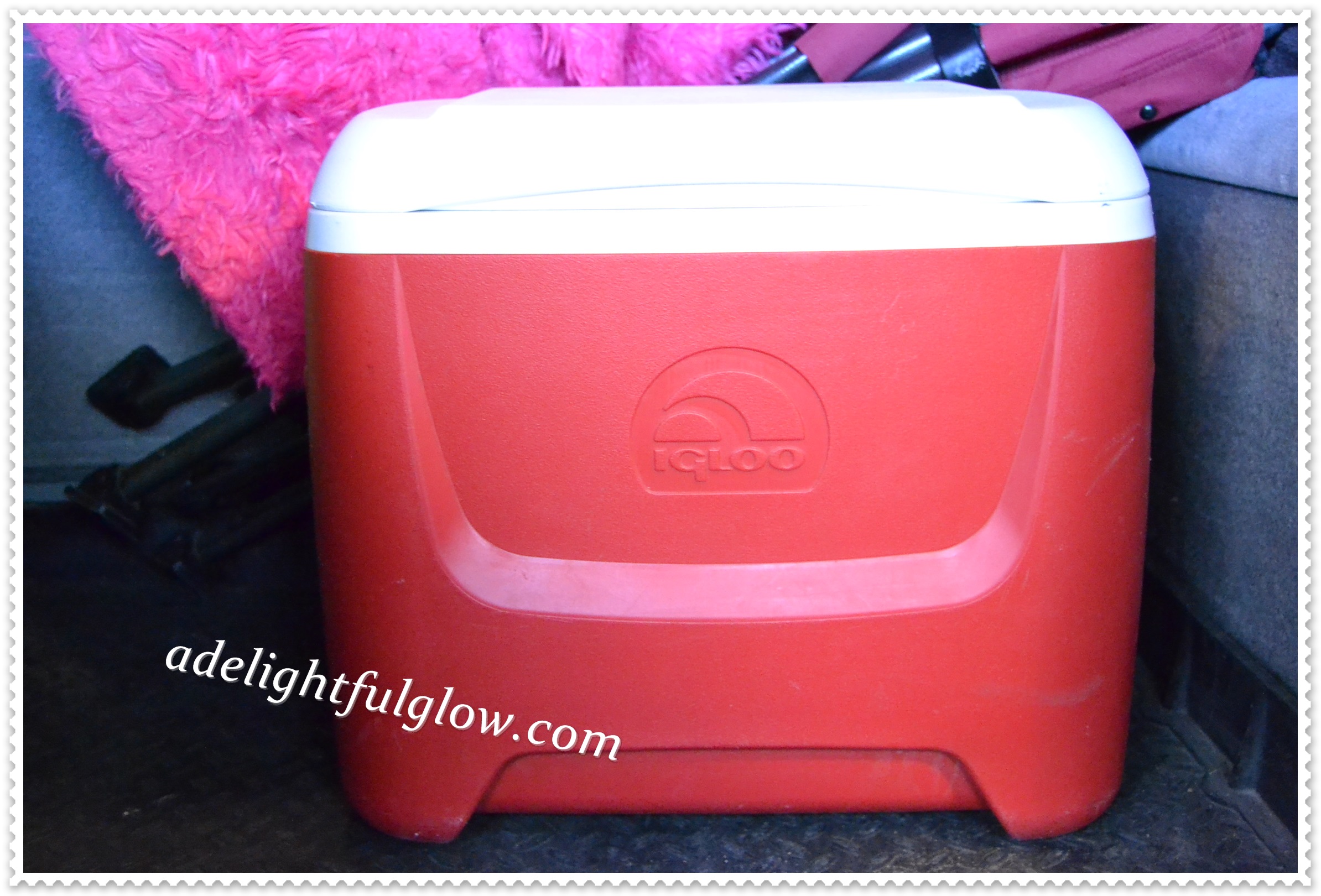 In the summer, I like to have my small, red cooler along in the cargo area. We have at least a 20 minute drive from the grocery and piling the cold items into a cooler is a good idea. Particularly, if I’m headed by the field on my way home.
