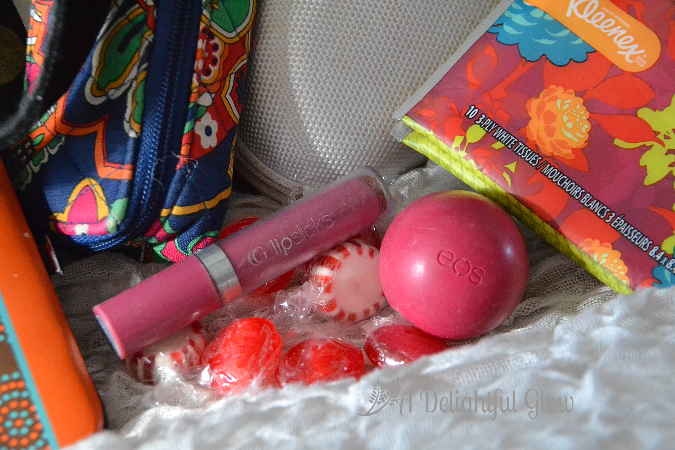 I love my EOS lip balm. The round shape makes it easy to grab from inside a bag.