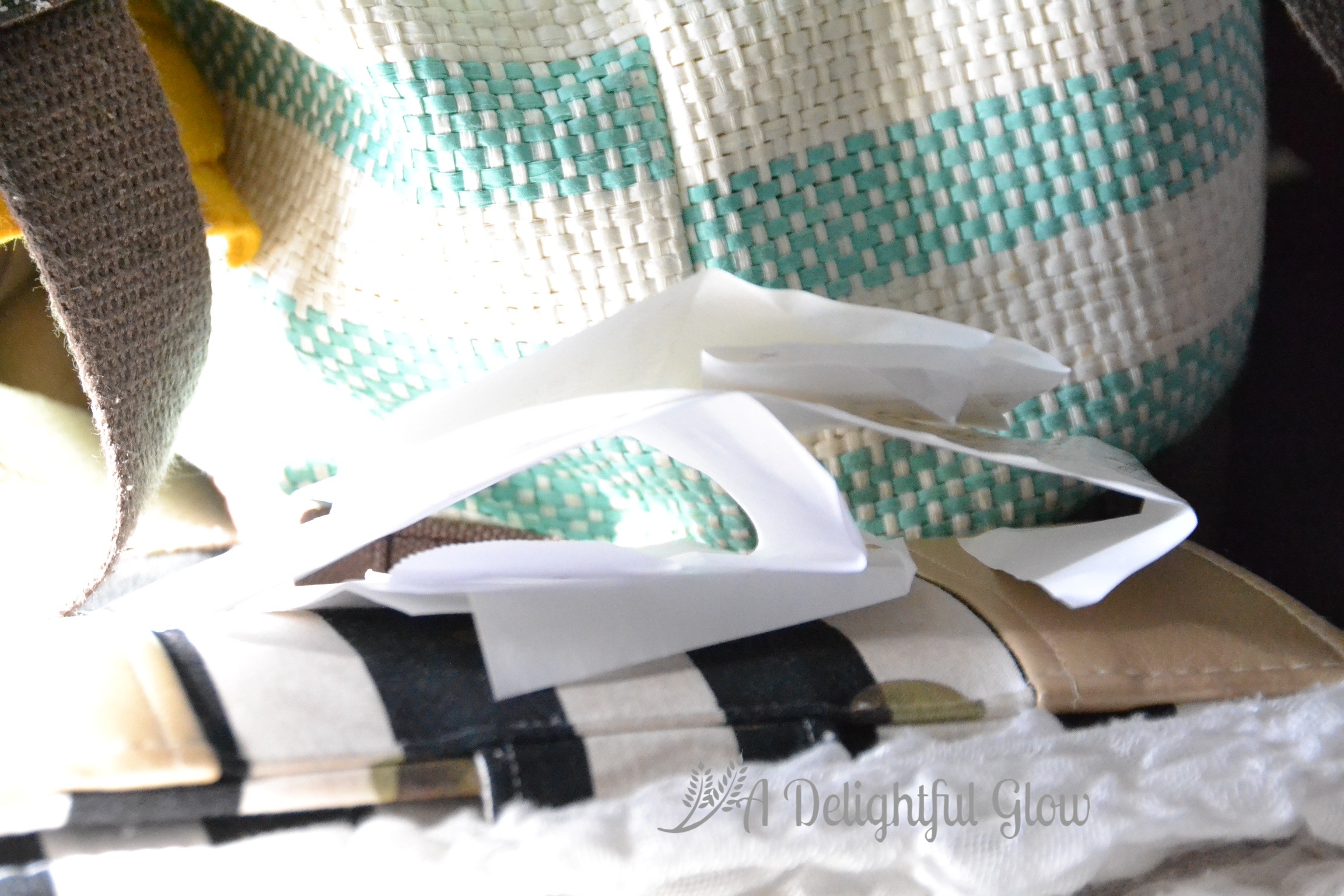 Sometimes I have a bag with a few items I keep in my car so they’re available if I need them, but I don’t have to carry them everywhere.