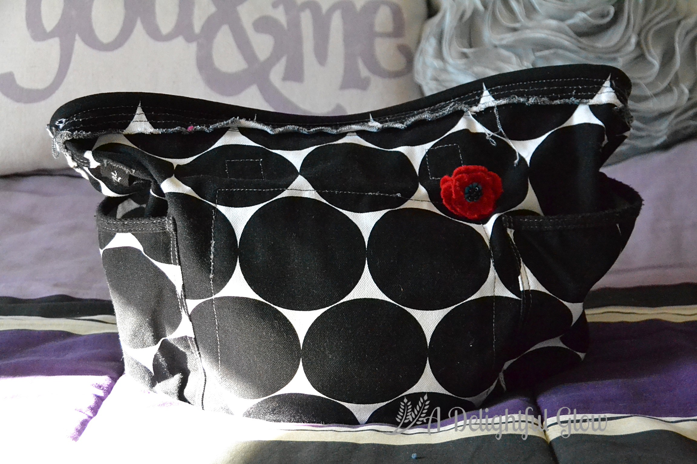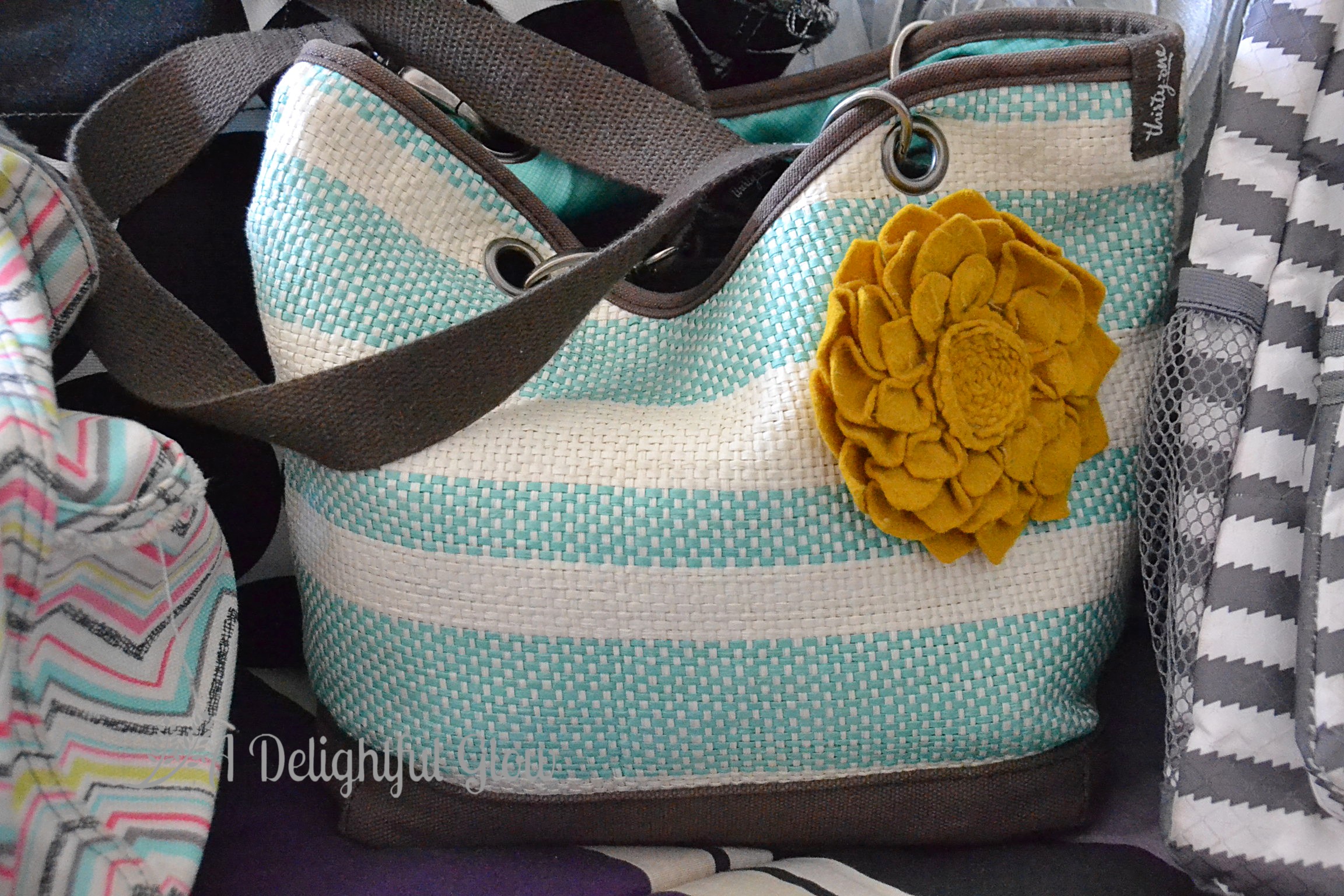 The colors of this small tote make me happy. Adding a felt flower pin makes a fun pop! This one was a gift from my sister.