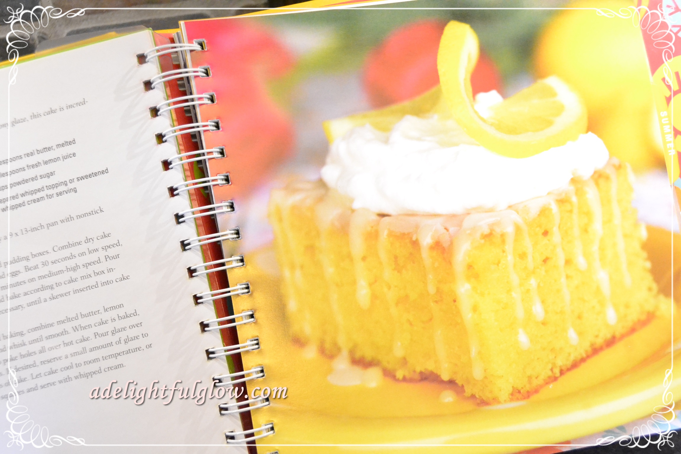 The Glazed Lemon Cake in this cook book! There’s a picture in the bottom left hand corner on the cookbook cover of a piece of the lemon cake. My friend gifted me with a Savoring the Seasons with Our Best Bites a few years ago. Once I tried out the lemon cake recipe, it became a favorite. The cookbook, itself, is just fun! It’s bright and pretty, full of color, and beautiful food pictures.