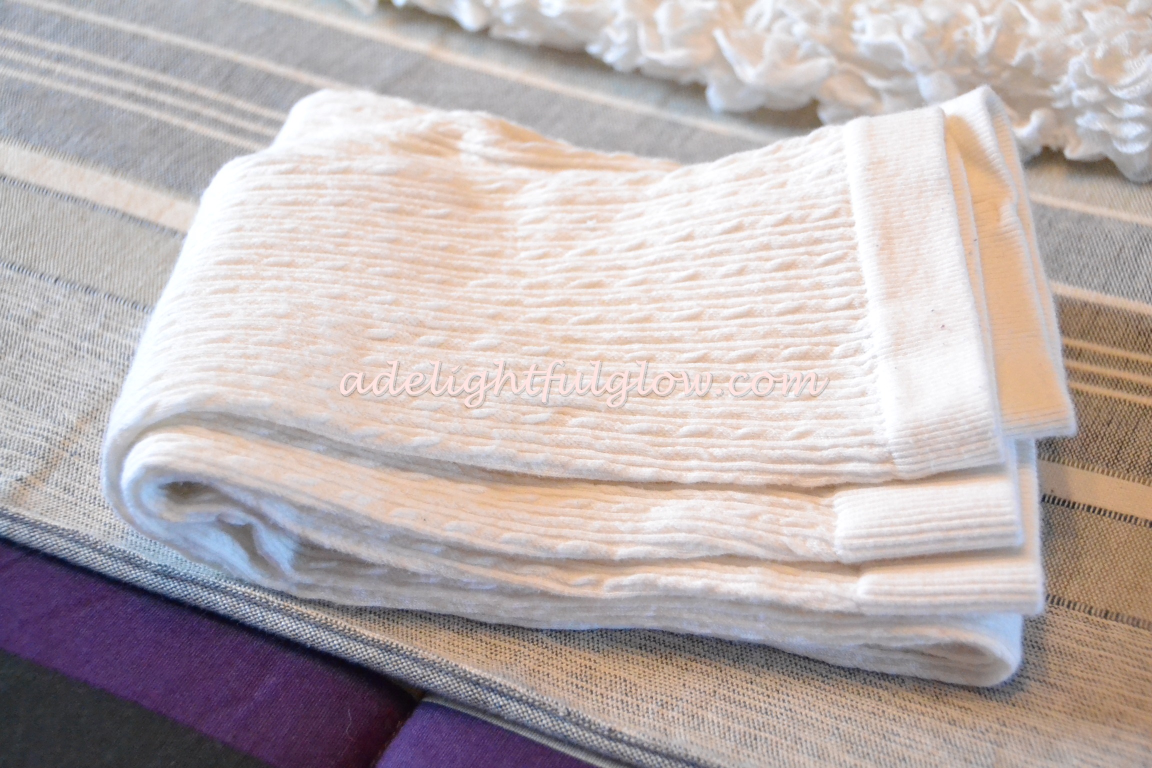 They are cotton with a cable weave and they are very comfy. My niece had some at Christmastime and she’d found them at Wal-mart. Or as BooMama would say, {and other people from the south, I’m guessing}, she found them at the Wal-Marts. I get a giggle out of this terminology. I went to the local Wal-Mart store while I was Ohio and found the leggings my niece had worn and I had noticed and liked and consequently, she had referred me to Wal-Mart. {I found, not the leggings she was wearing, but more leggings for sale.} {just to be clear.}{and they were in clearance, which is always exciting.}
