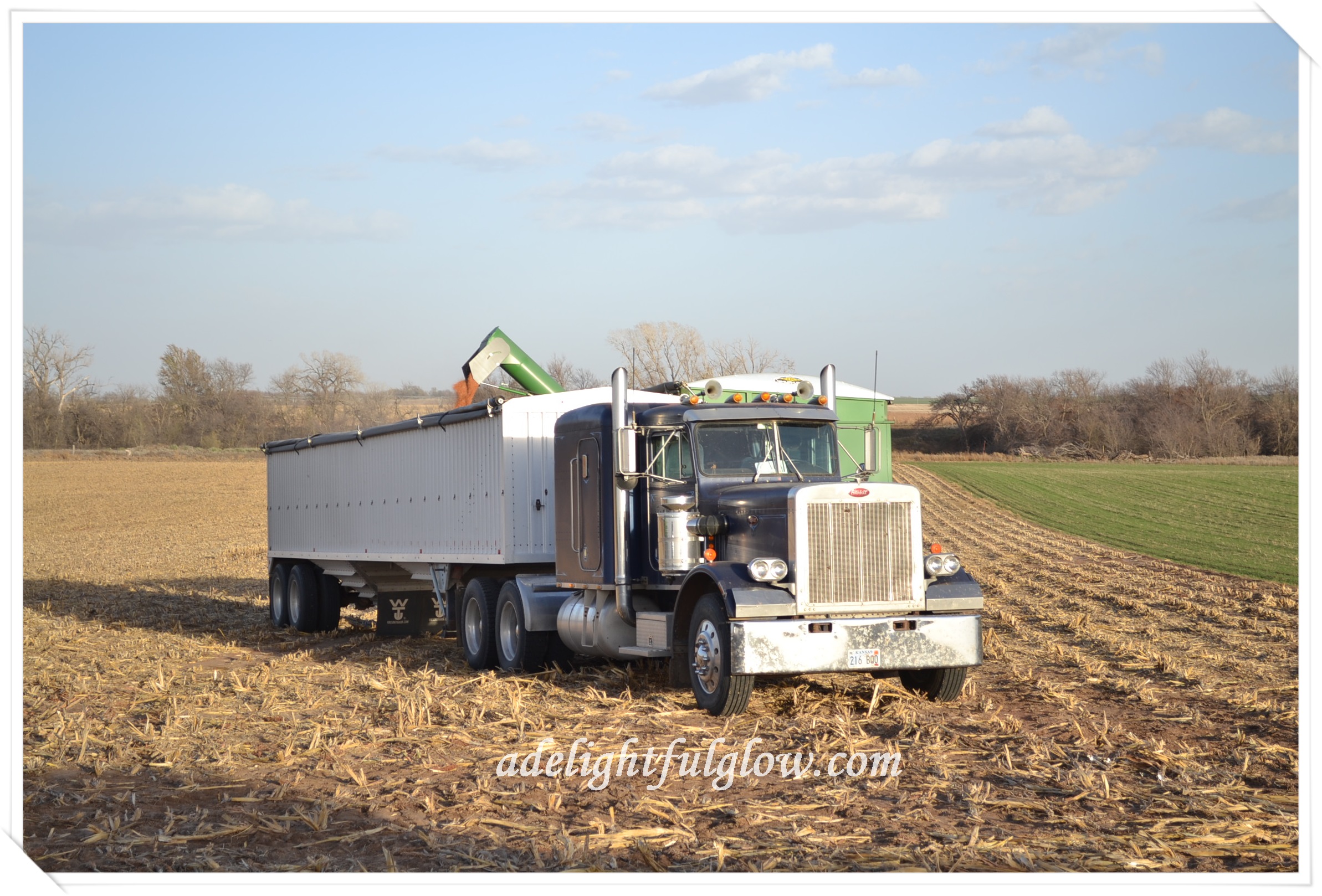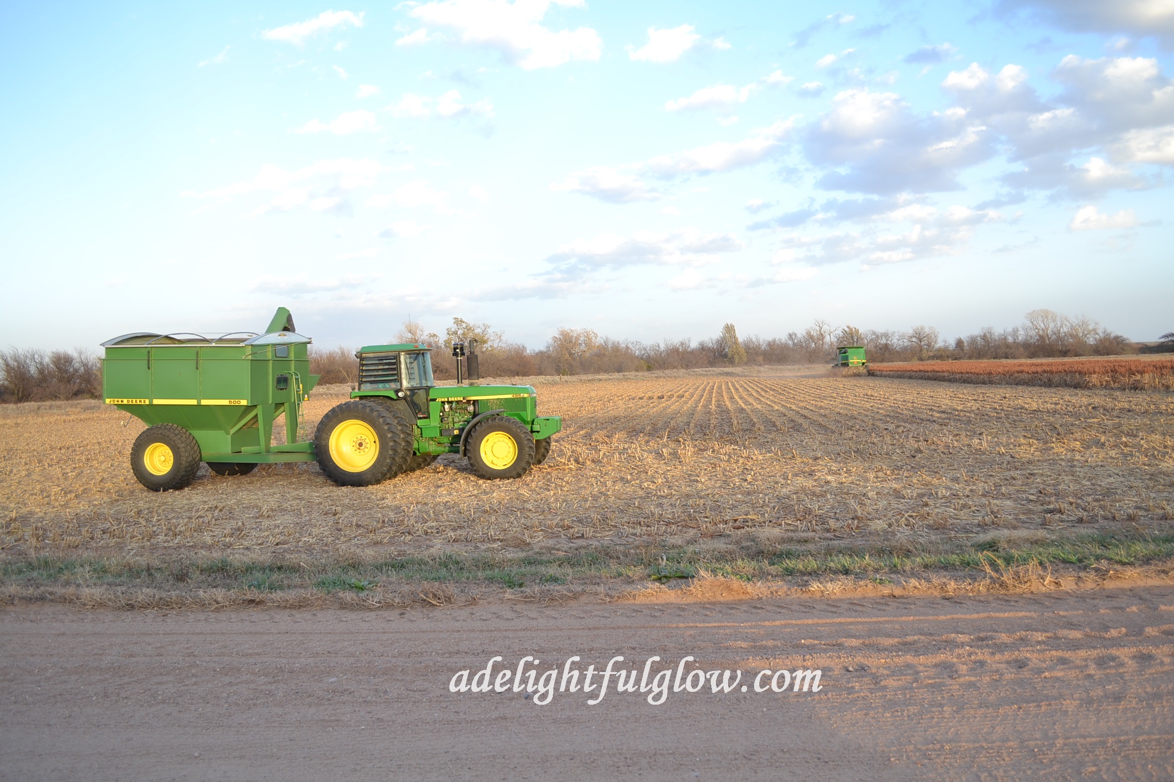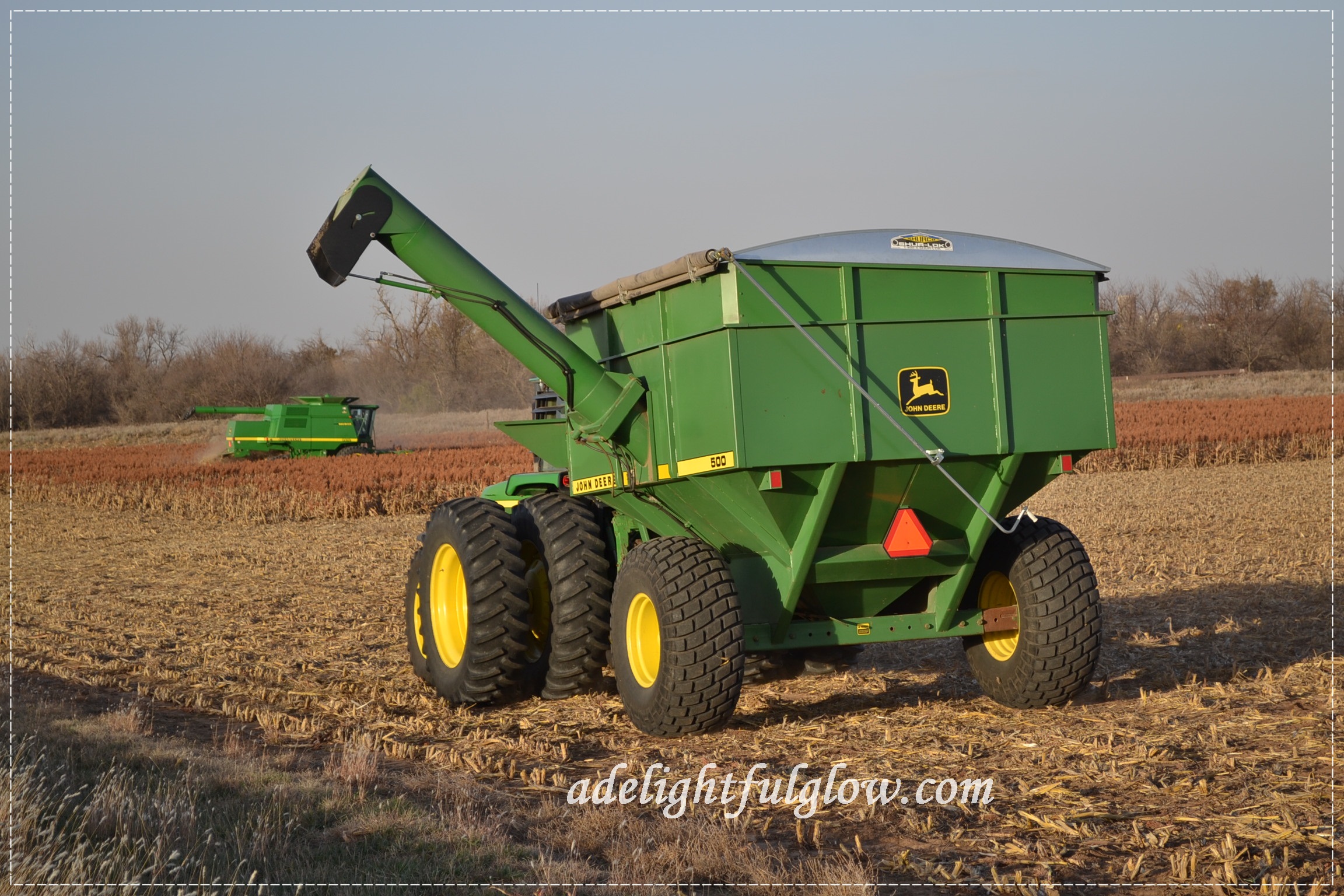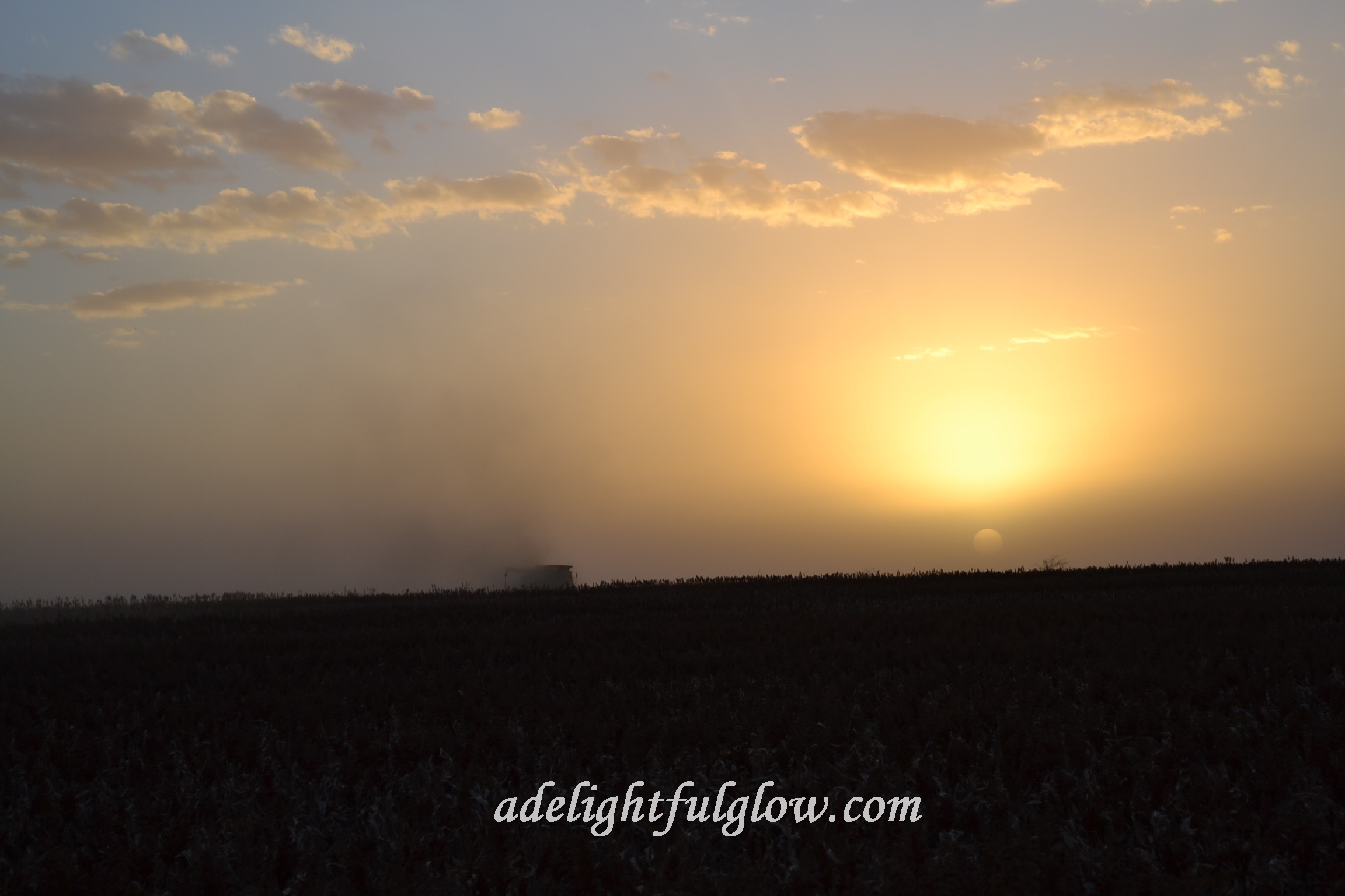 We started cutting milo the end of last week. Today my farmer man is racing against the weather. We were waiting for the moisture to go down in the grain, so we could cut. Now we’re hoping to get the most of it cut before the weather changes. We’re supposed to get rain tonight, with the forecast for the next couple of days including wintry mix and snow/sleet and a high of 29 degrees on Friday. BRRRR. The end of November is edging up on us, though, so I suppose we can’t escape the cold completely.