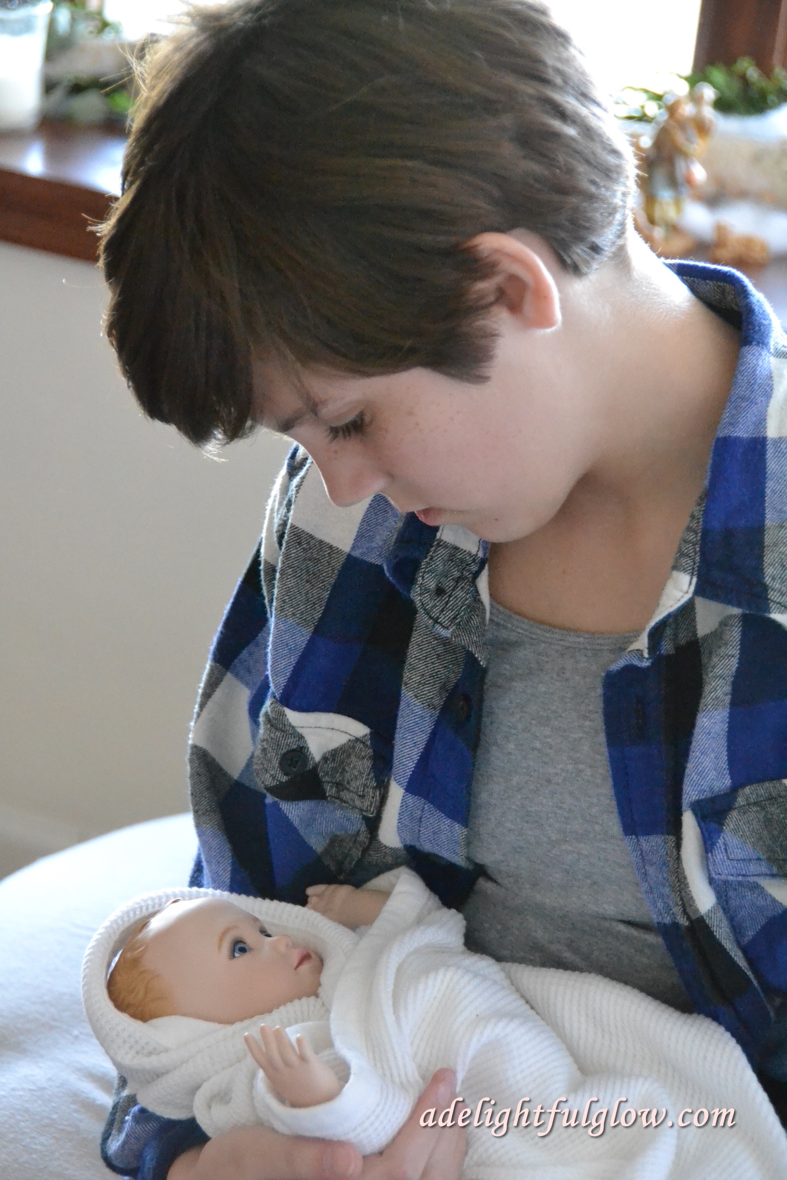 I started blogging in 2011. At Christmastime I snapped some photos of my {then} small children when we were setting up our Nativity. I put them into a blog post with a poem that flowed from my pen and without having any idea at that particular point in time, a tradition was born.