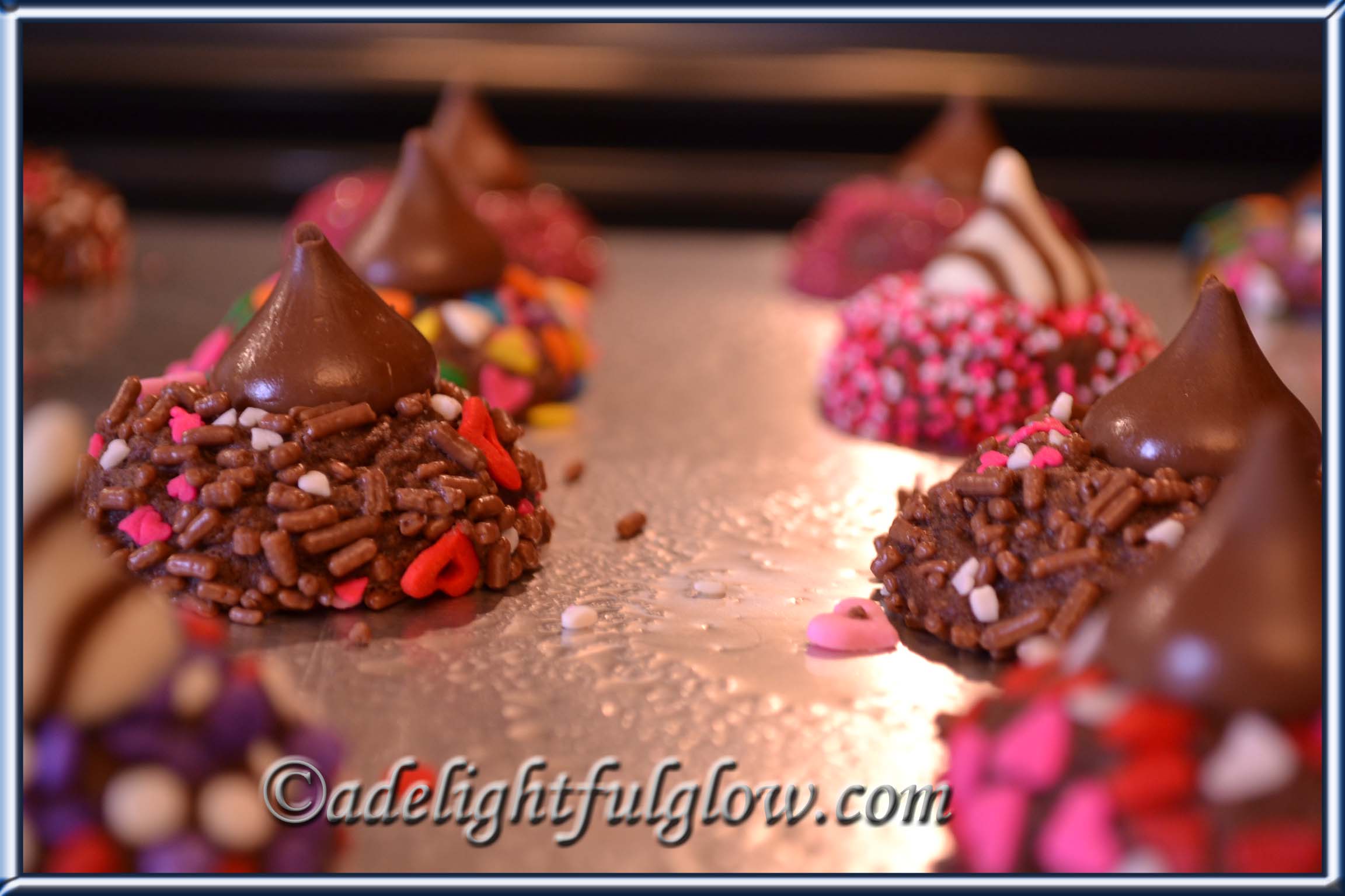 We also made these super-cute and super-yummy cookies from The Kitchen is My Playground. These cookies could be personalized for any holiday. How great is that? I’ve always enjoyed making fun cookies, but I don’t take the time nearly as often as I used to. I decided that I should do them more now that I have two great helpers. Except we don’t need desserts around any more often. 🙂 I couldn’t believe how quickly we got them done. My kiddos were both around and both excited about making these sweet treats. I made the cookie balls while they rolled them in sprinkles. They unwrapped the hugs and kisses while I started baking the cookies and putting sprinkles away. I had to stop and think about how long it would’ve taken me all on my own. I would have still been rolling cookie balls in sprinkles and here we were finished!