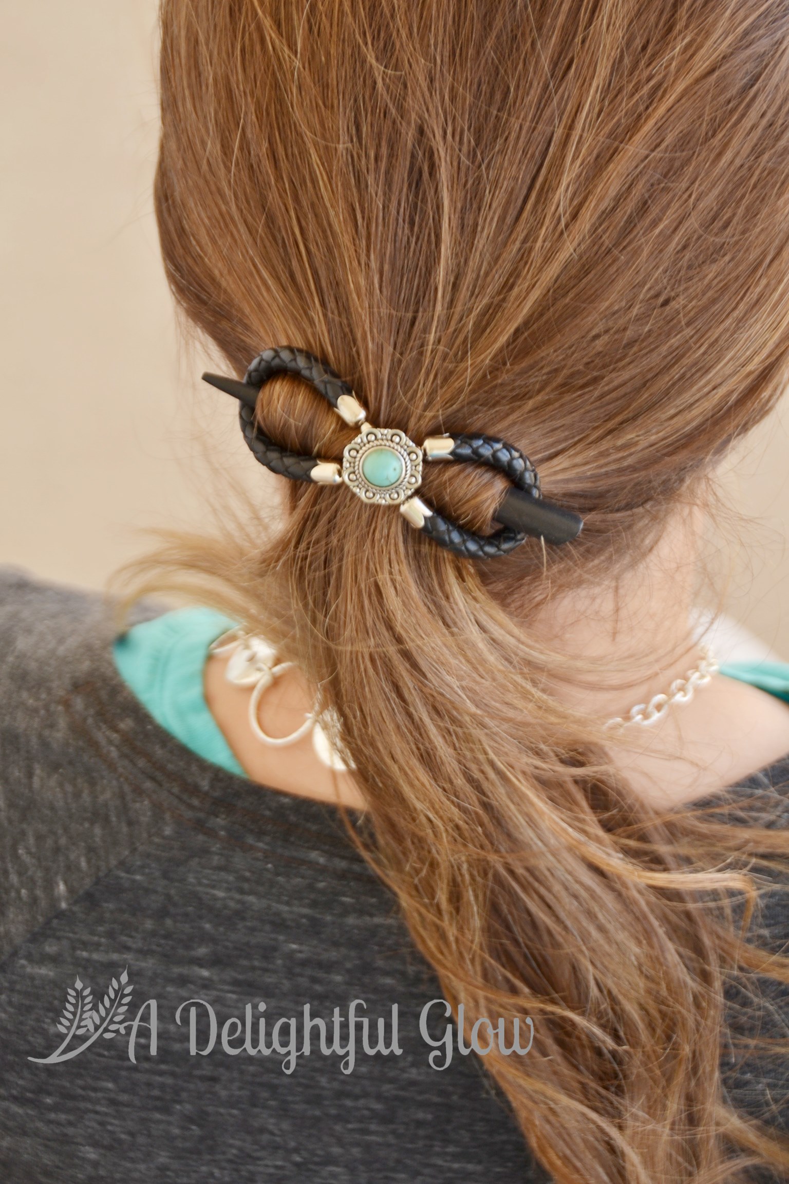 You can purchase the Leather 8’s with or without a smaller size wooden hair stick OR you can use a hairstick you already have. Some of the decorated hairsticks pair really well with the Leather 8’s.