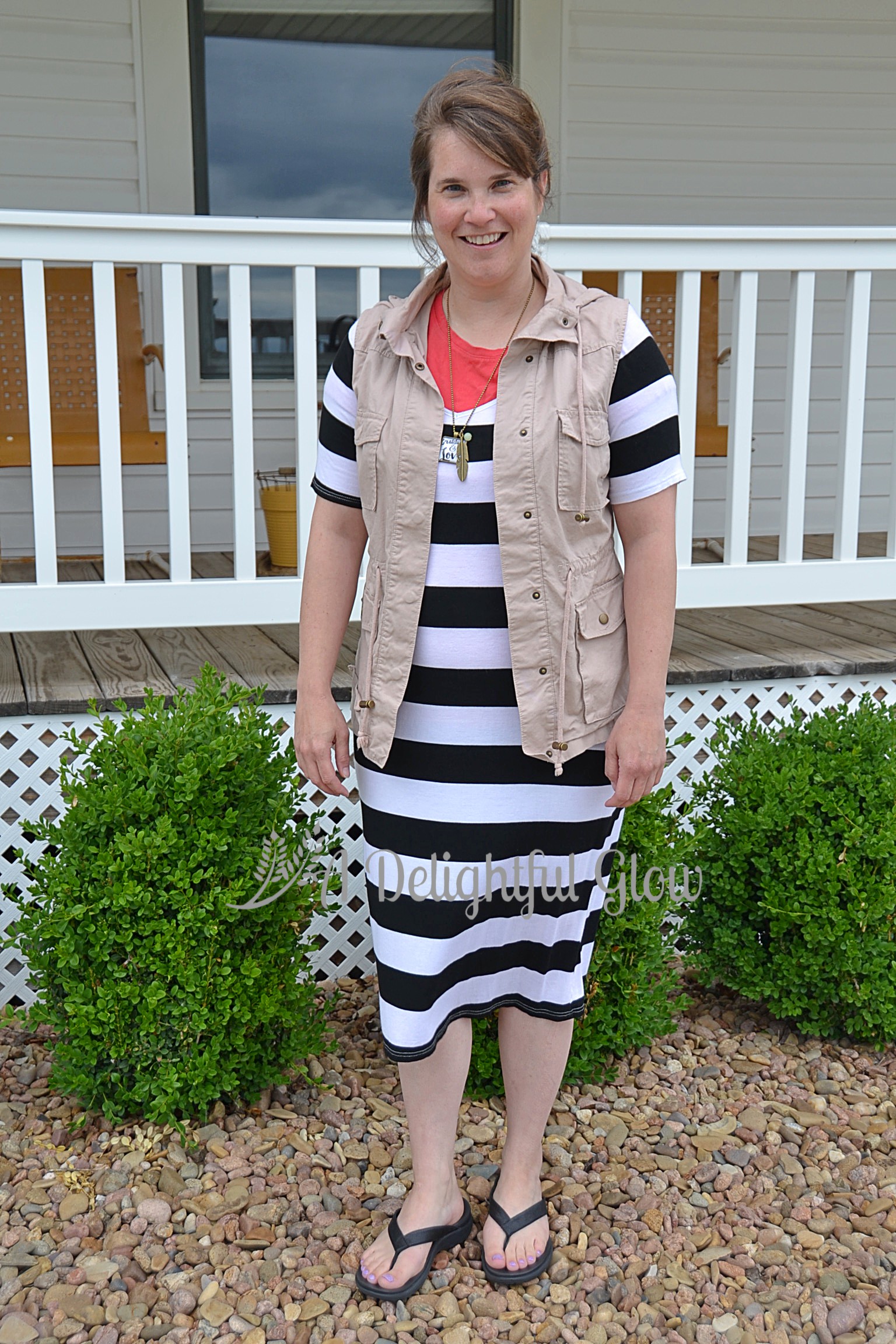 I think I got all rabbit trailed about my stripes and forgot to mention the vest. I love pairing it with the dress.