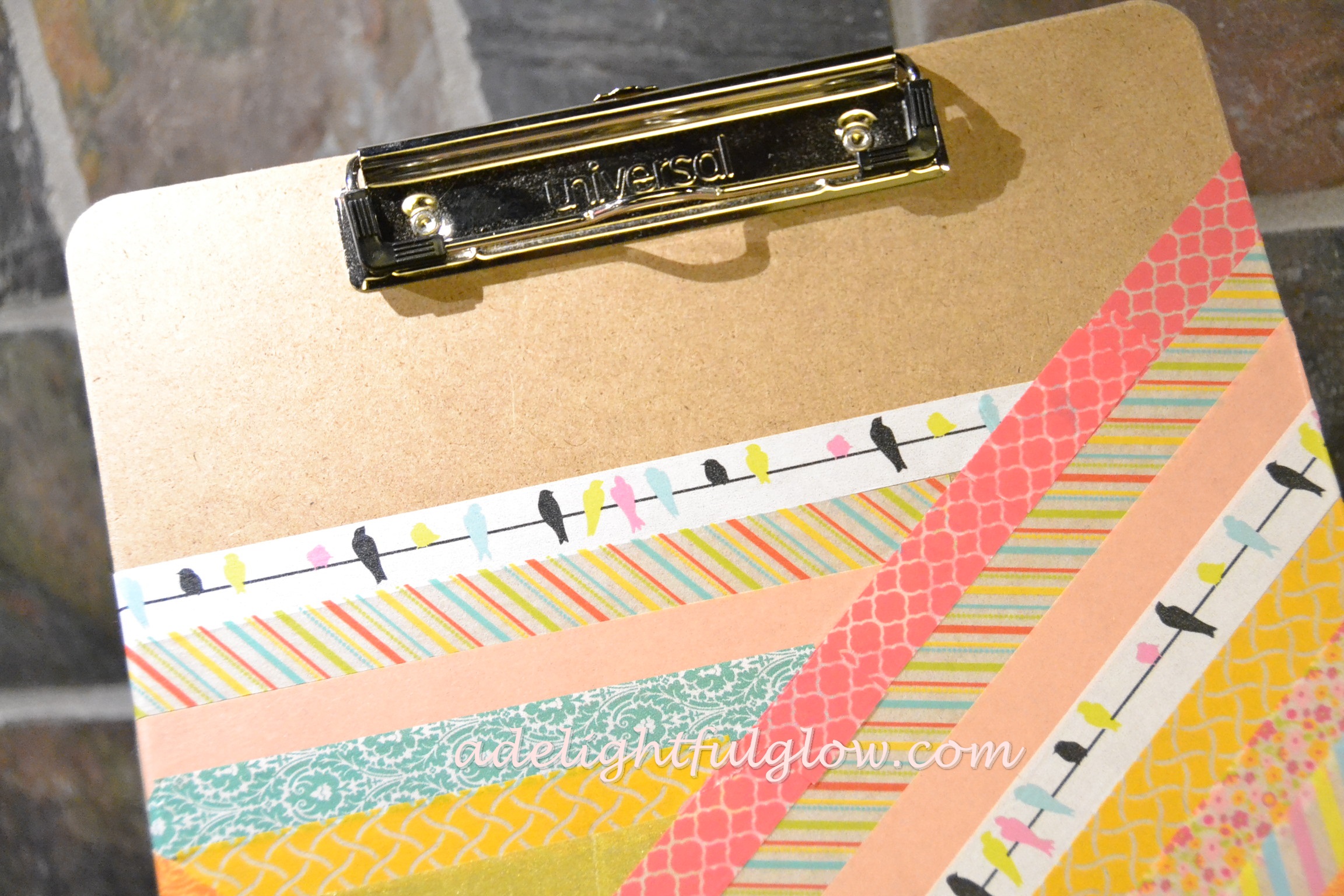 All you need for this is a blank clipboard for your canvas and assorted Washi tape. Our tape came from Pick Your Plum. And I think the clipboard is just from Wal-Mart.