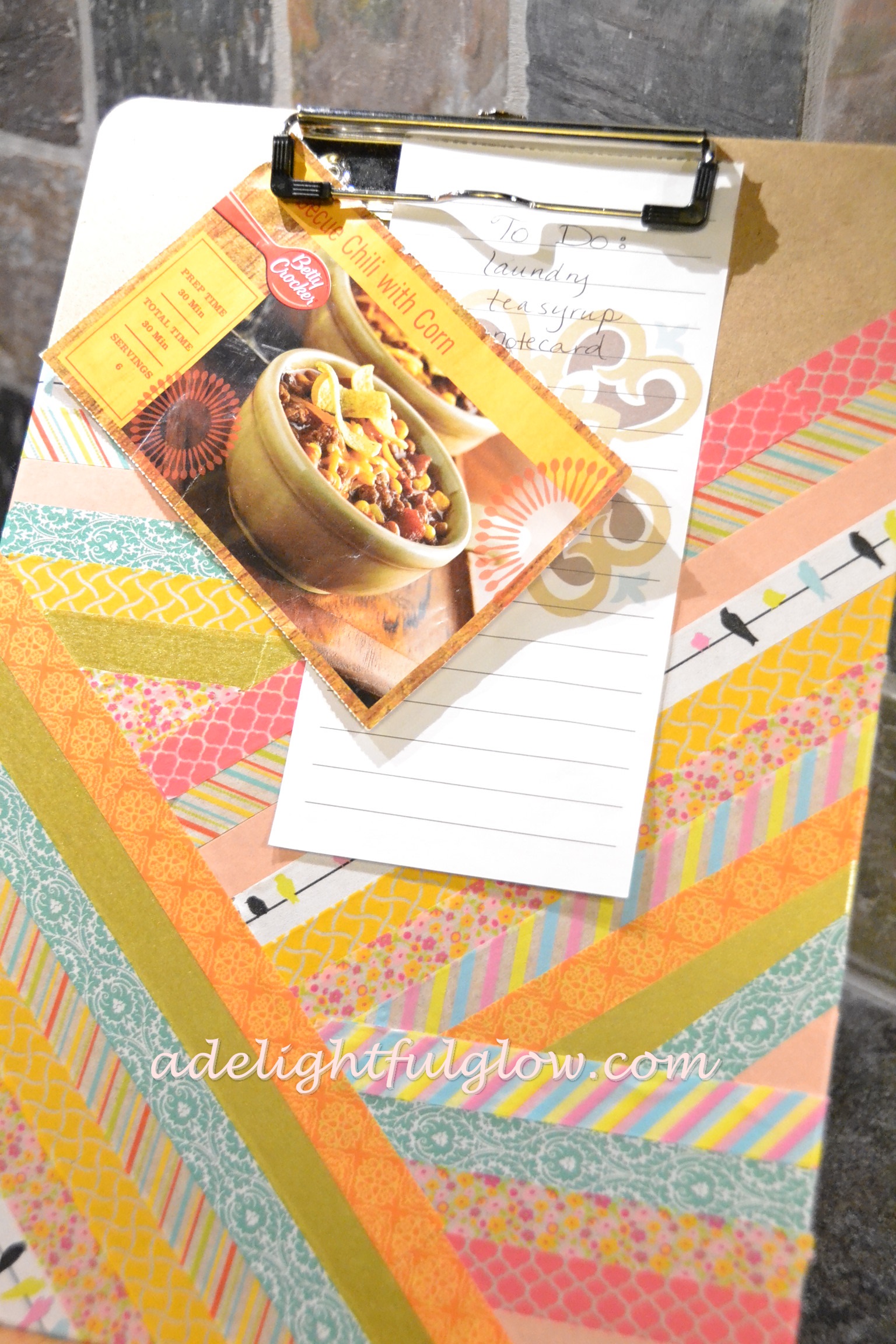 I’m pretty sure she saw this idea on Pinterest and I had several clipboards around and I had washi tape in amongst my ribbon and gift packaging stuff.