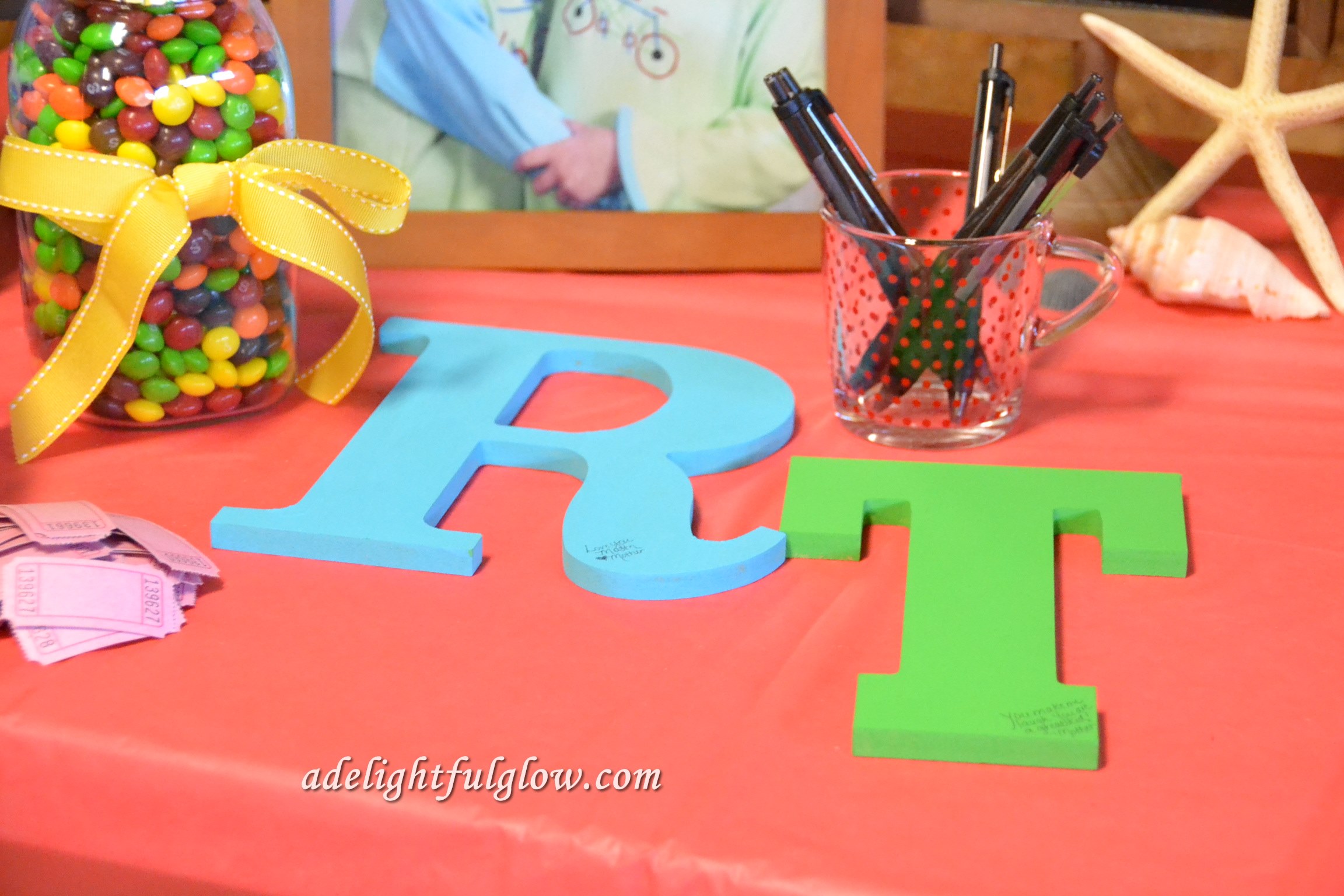 We reminisced and laughed and ate and had cake and balloons, so it REALLY was a PARTY and not just a meeting. We played the Name Game and we had a door prize and we had a guessing game. We had a wooden R and a wooden T for our family and friends to sign as keepsakes for Renae and Tucker. We took pictures and we looked at old pictures on a slideshow and we watched some funny, old videos of the kiddos that my brother filmed when they were very young. We celebrated and we thanked God for these two children of ours. We drank cold drinks and hot drinks and ate ice cream, and ALL in ALL, WE HAD A PARTY!!