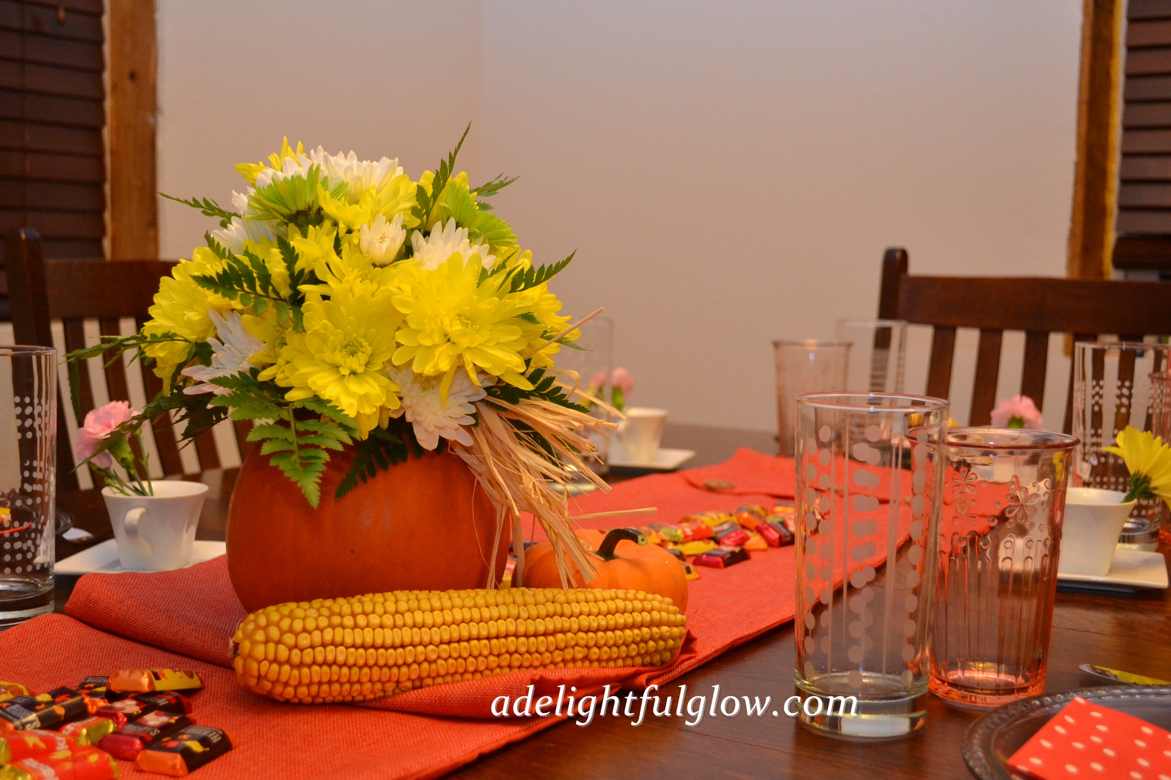 Lovely fall flower arrangement! It was part of my friend’s gift and served as our centerpiece too!