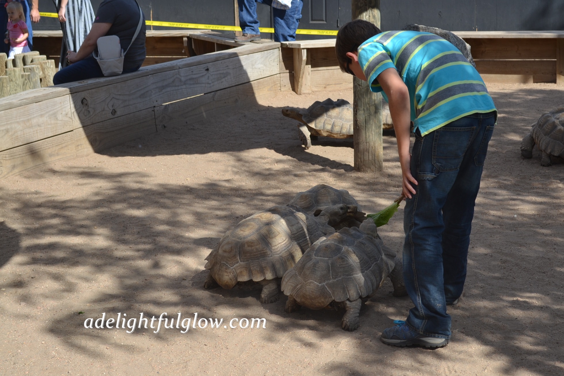 Feeding lettuce leaves to the tortoises…they can move surprisingly quickly!