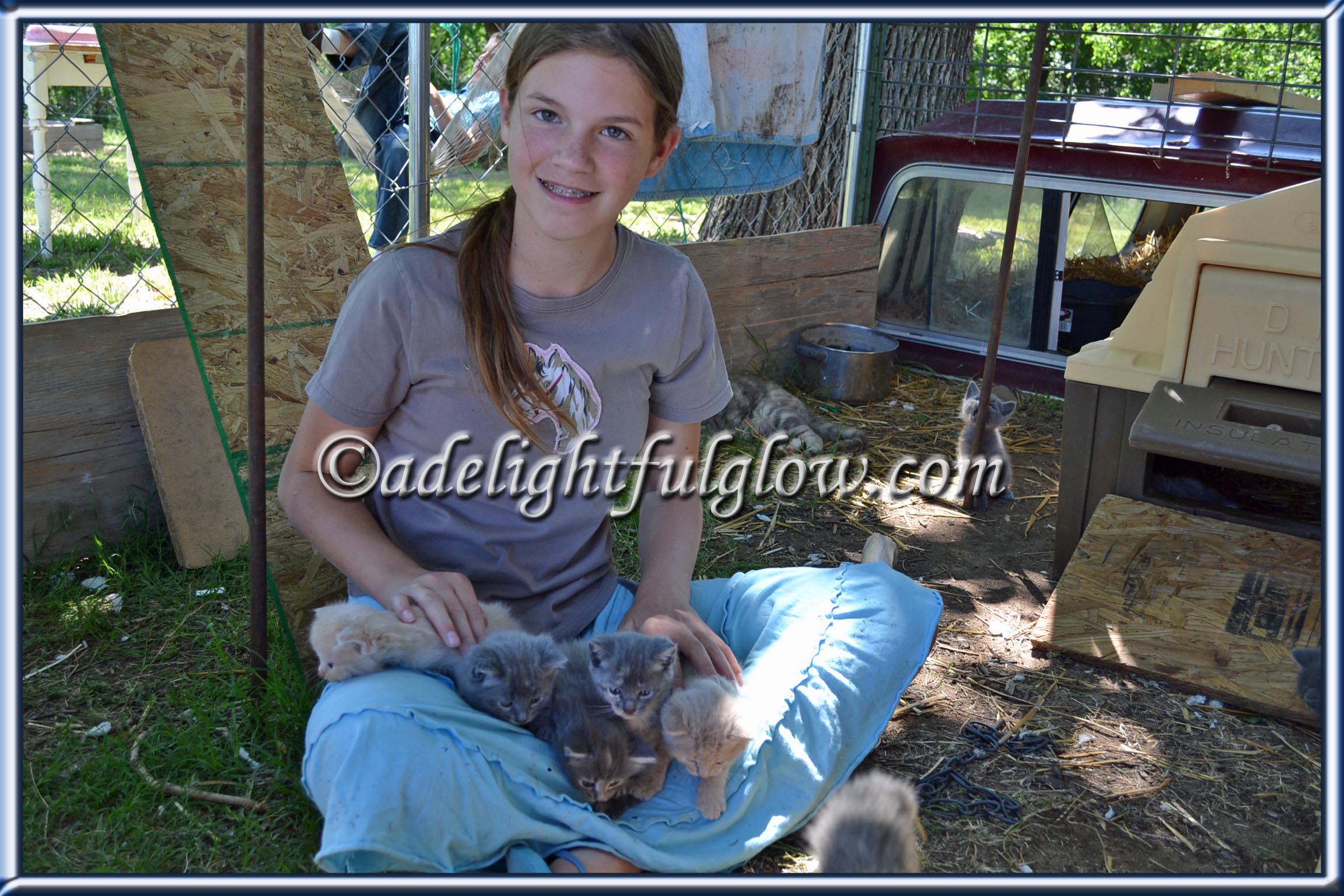 Fun to see Renae with a lap full of kittens. Tucker looks so relaxed in the hammock. Praise God for His traveling mercies that brougt them home safely. Thanks again for letting them come. We had a great time. Love all the pics. The old homeplace looks completely changed!!