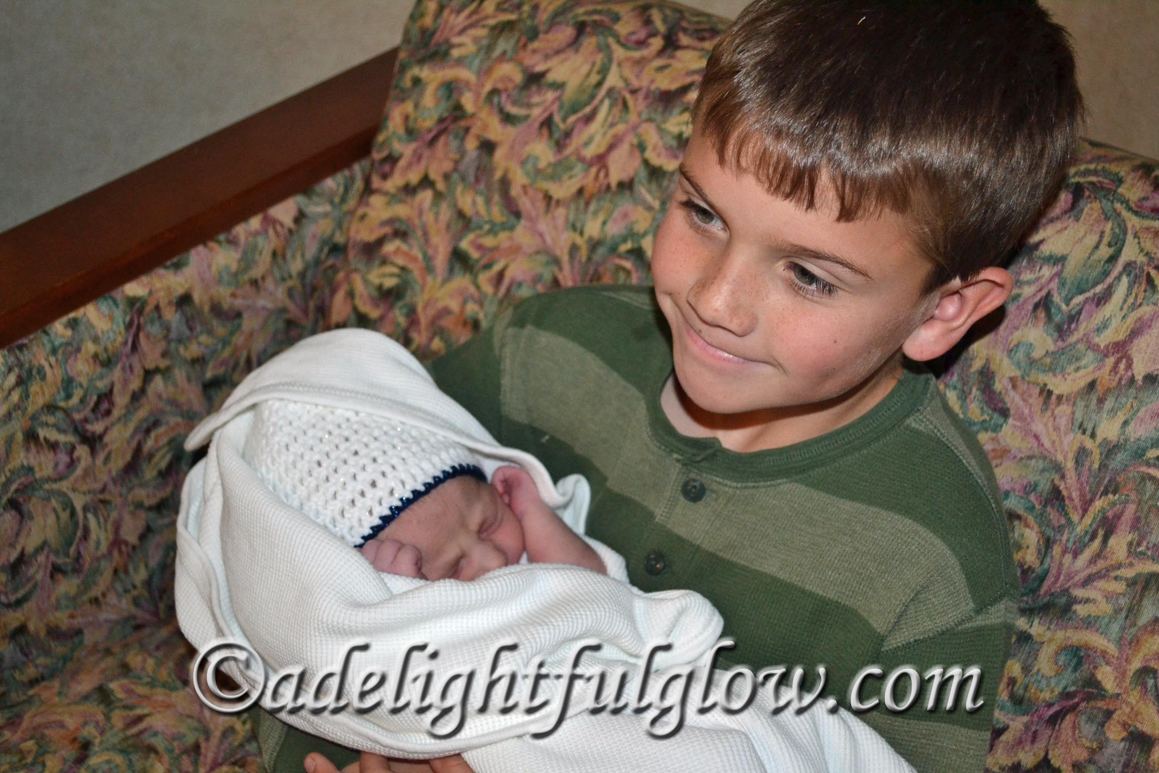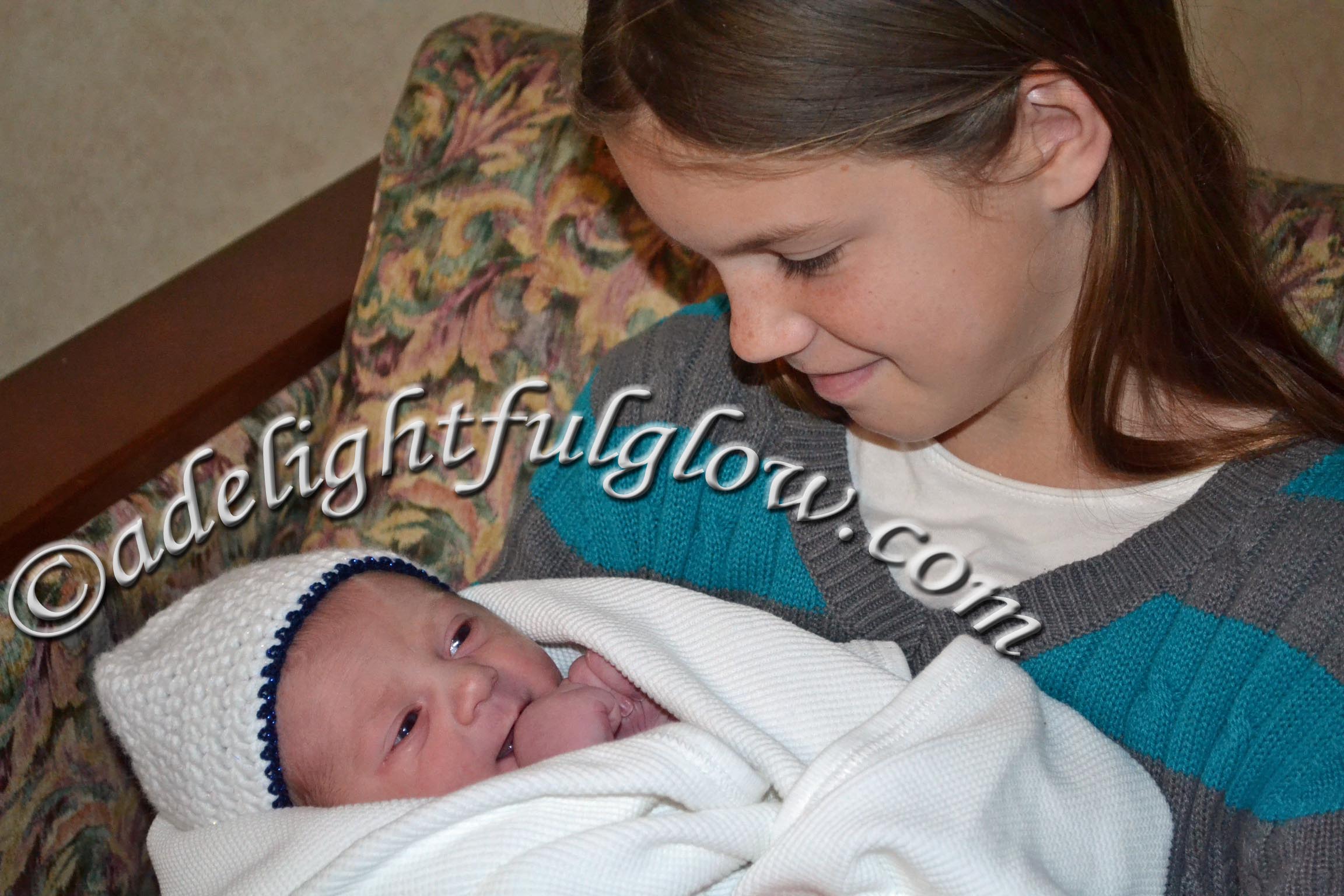 AAAWWWW!! So sweet! Her hairline and forehead make me think of Tucker’s newborn pics. Love the pics of the big cousins holding her. Renae looks so motherly and Tucker looks so——um, not sure how to describe his expression, but I love it. Would be fun to cuddle her a little bit. Also would like to hug her cousins.