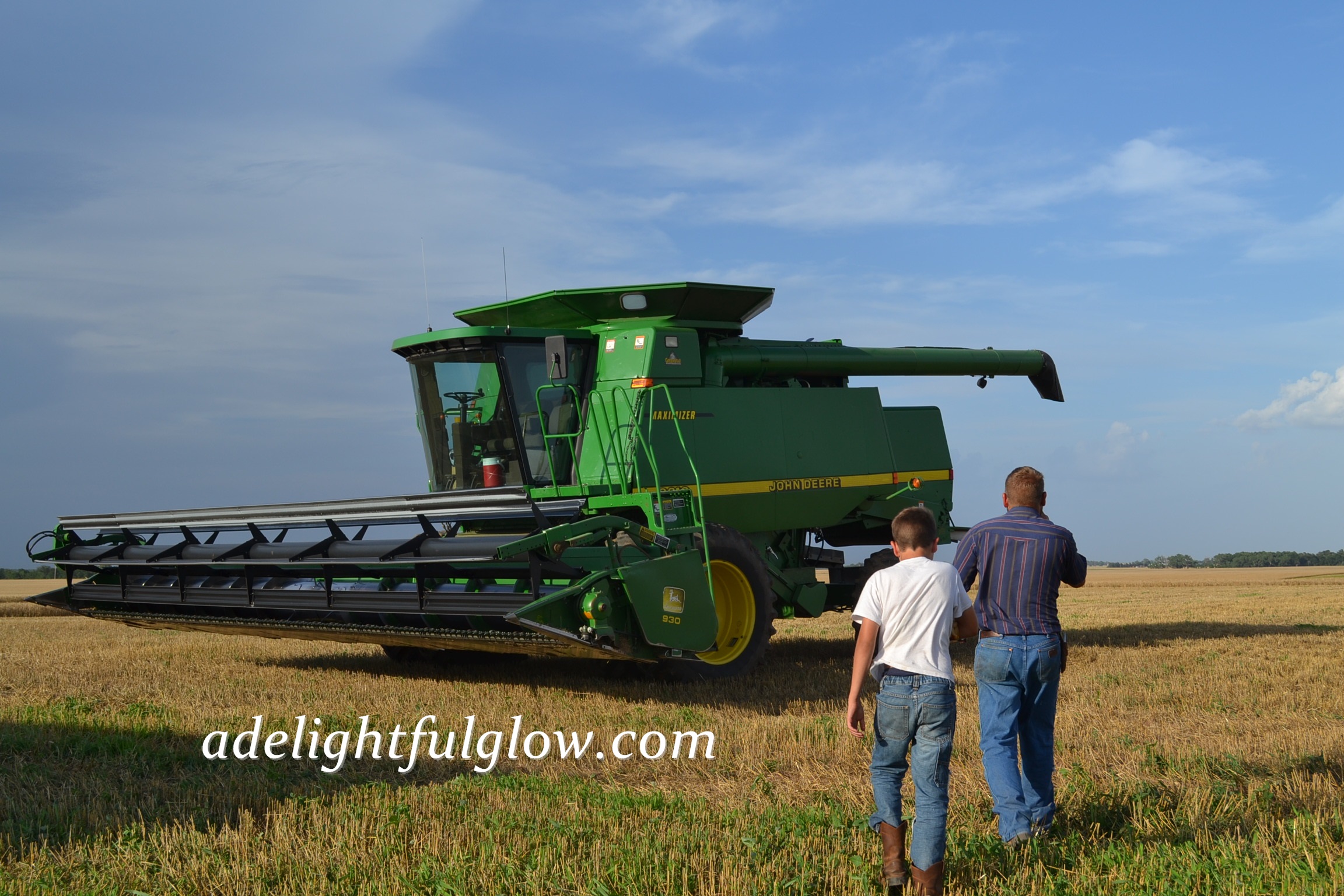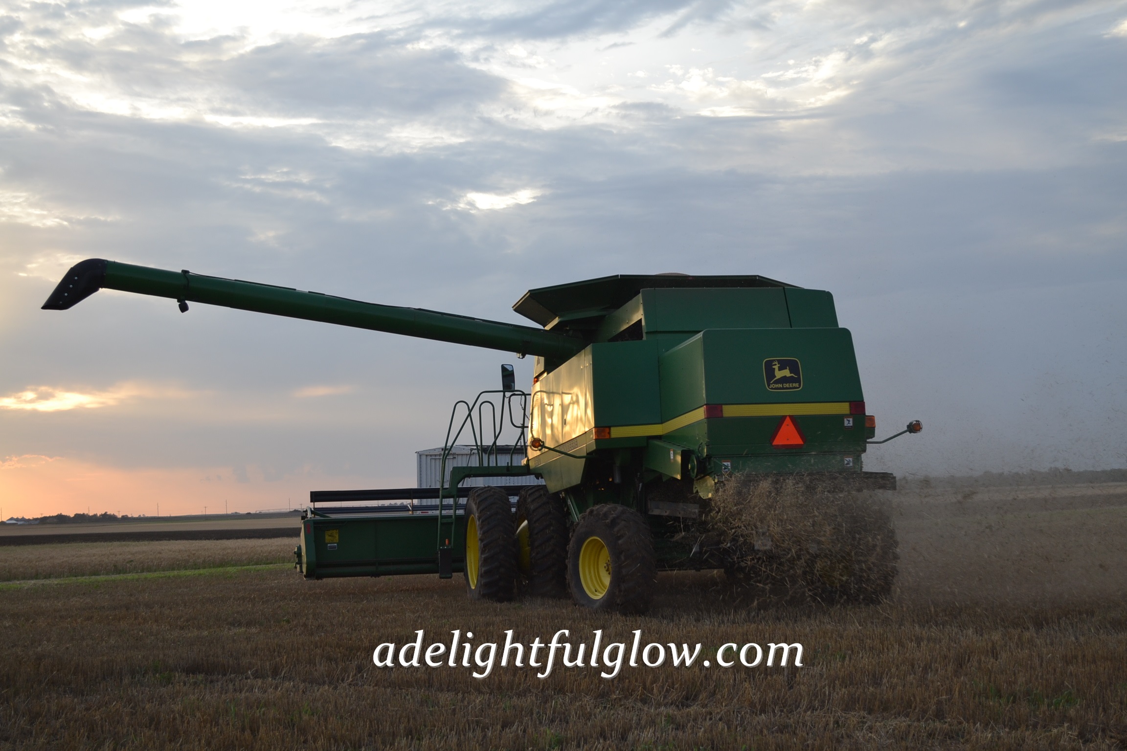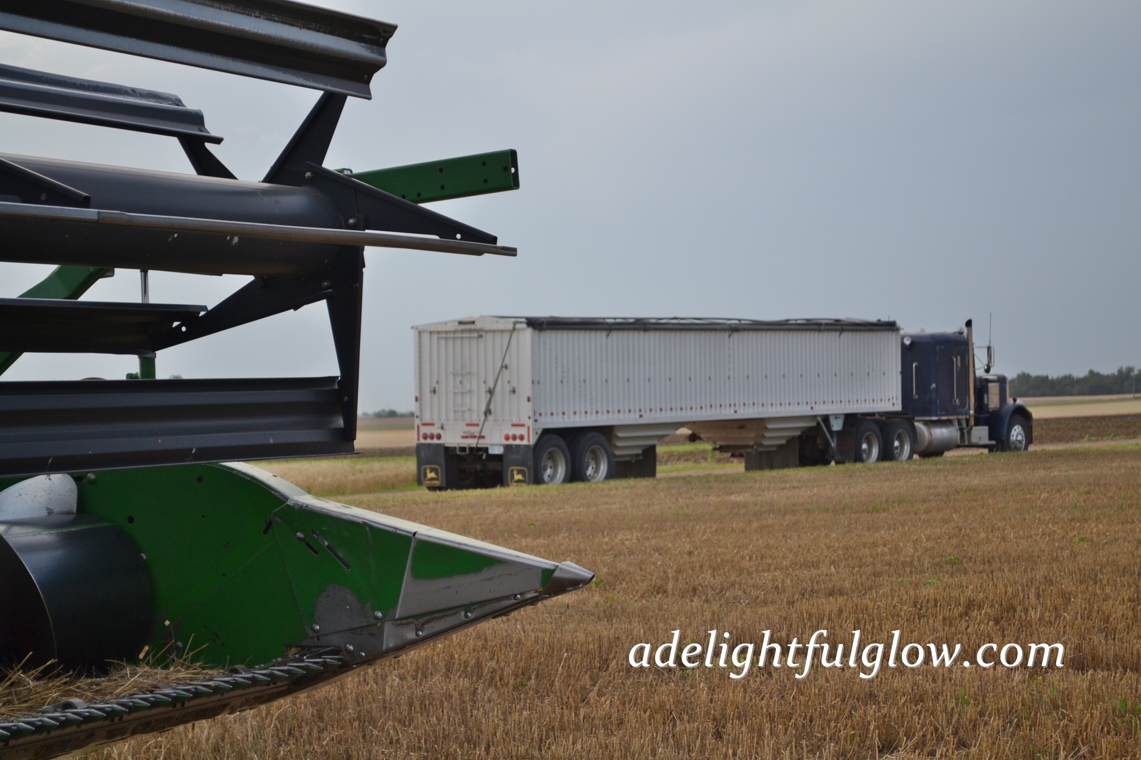 My husband started farming eighteen years ago. He cut his first milo crop in the fall of 1996, married me in May of 1997, and cut his first wheat crop in June of 1997. {I can’t say for sure which of the three events he enjoyed the most, but I’m leaning strongly towards wheat harvest.} 😉 1997 yielded a very good wheat harvest. We cut some 70 bushel wheat and haven’t done that since. The elevators filled up and the line of trucks waiting to dump their wheat backed up onto the edge of the highway. My new husband borrowed a semi and trailer from a neighbor so he could keep cutting away with his John Deere 95 combine. His Grandpa was hauling wheat for us in the dump truck, but was stuck in line, waiting, at the elevator. Every bit of this was pretty new to me. I knew a few farm basics and visited once during wheat harvest, when we were dating.