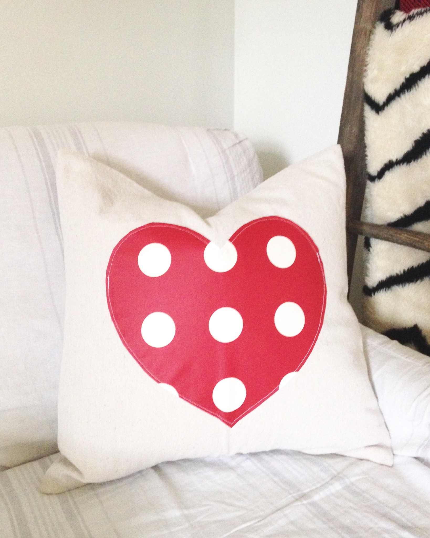 ONE Polka-dot heart pillow in RED coming at you straight from SEW A FINE SEAM!!!