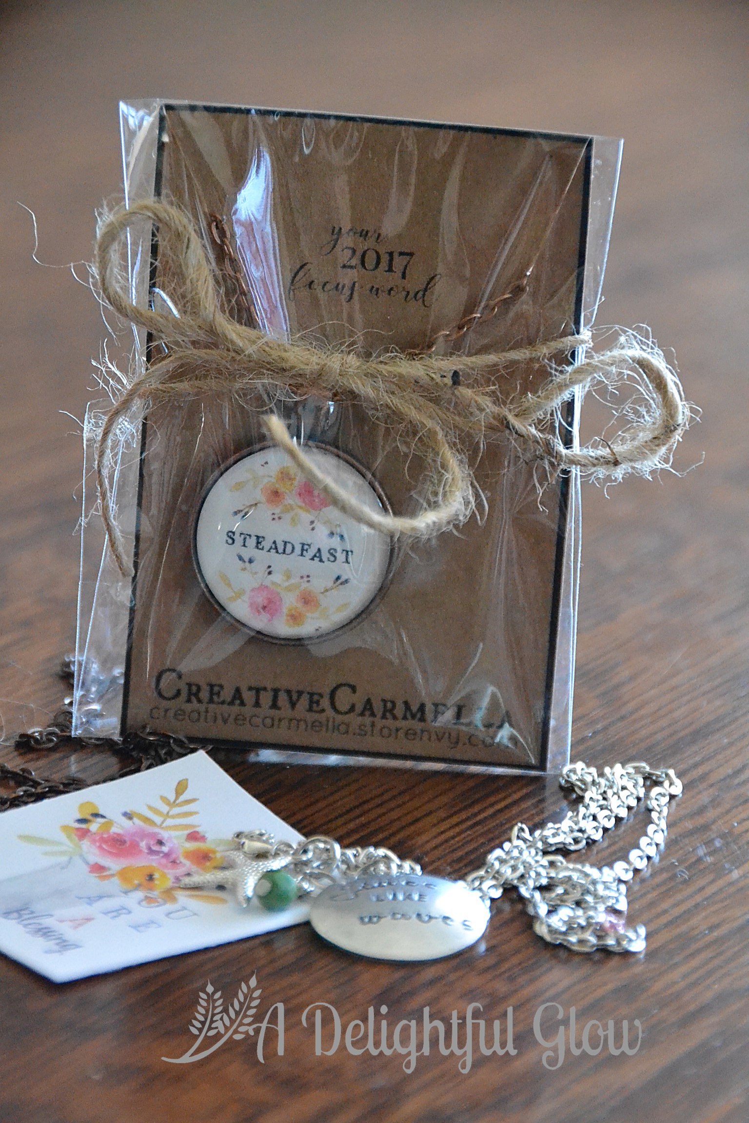 Part of the giveaway package is a necklace like mine from Creative Carmella…………………and the winner gets to choose their word!!! I’m so excited about it.