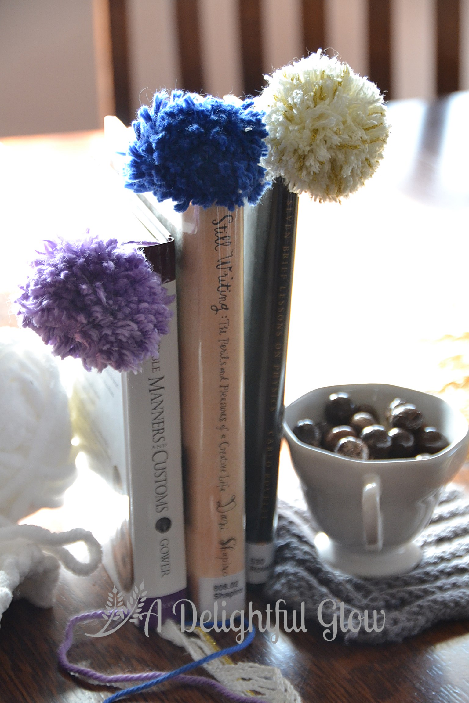 This stack of books with their pom-pom book markers was on her desk too. I love the bookmarks she made! Renae just finished chemistry and she’s pretty excited about starting physics. She keeps telling me Scienc-y things that fly right on through or over my head!