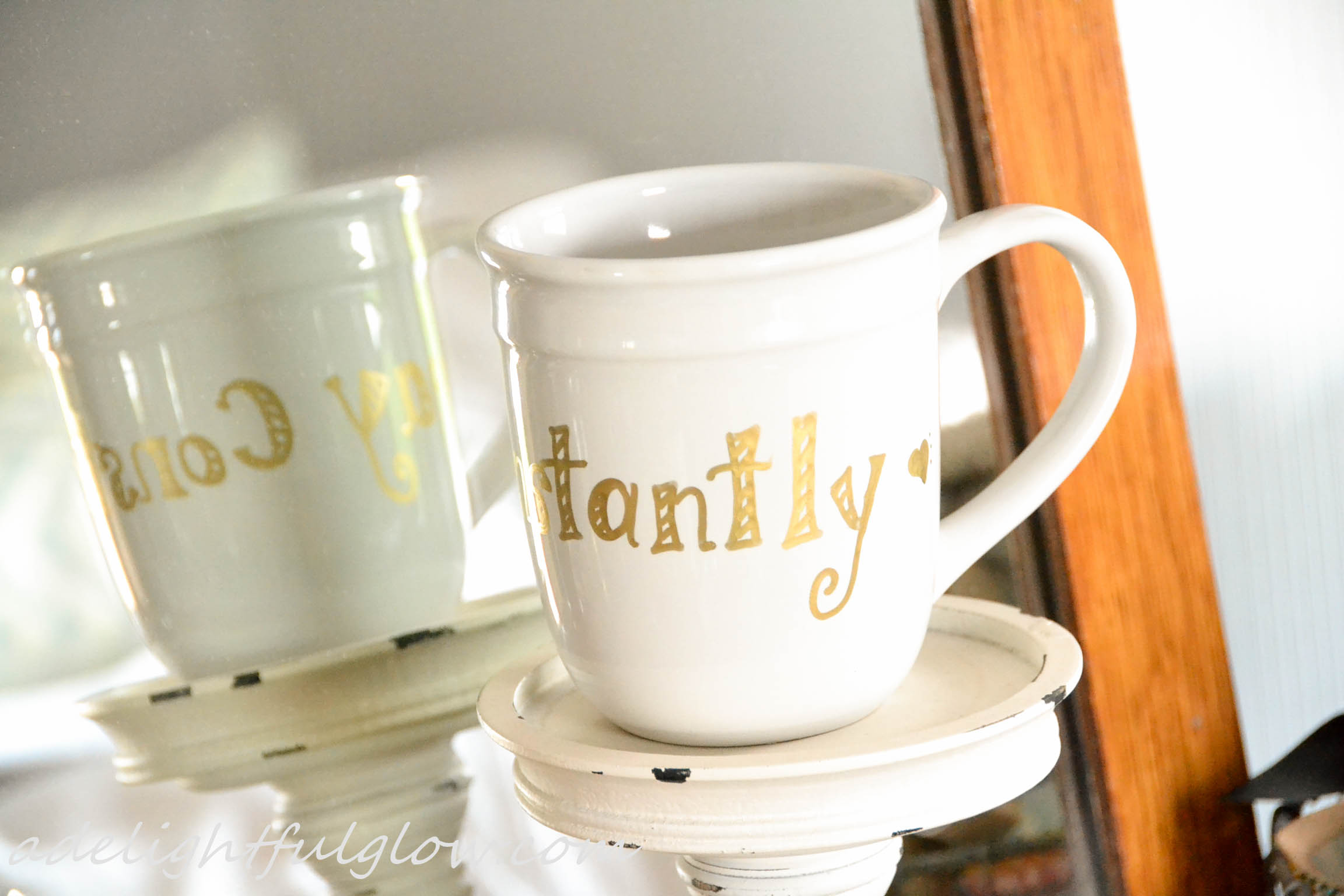 Then I was struck with the IDEA to try my hand at lettering some mugs.
