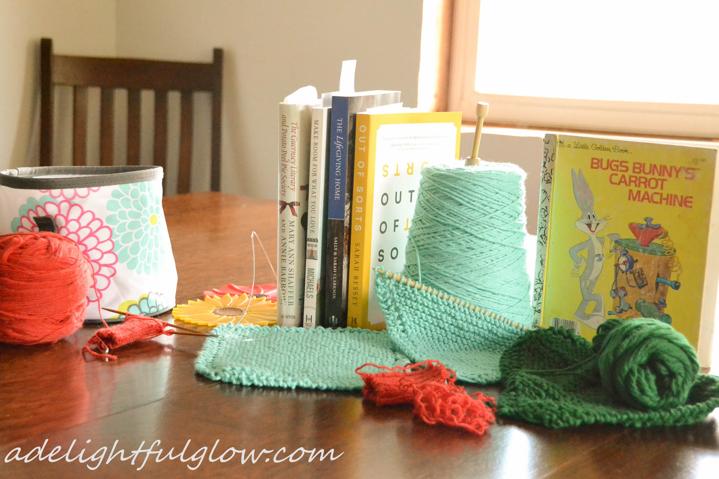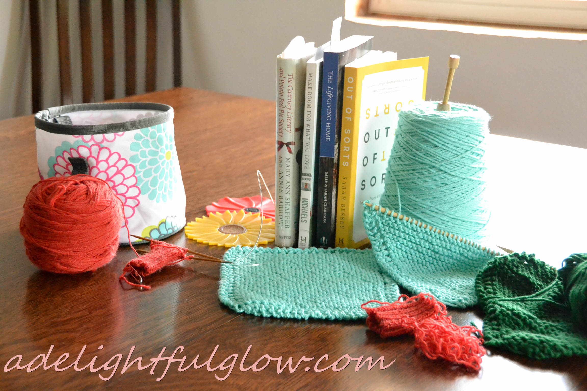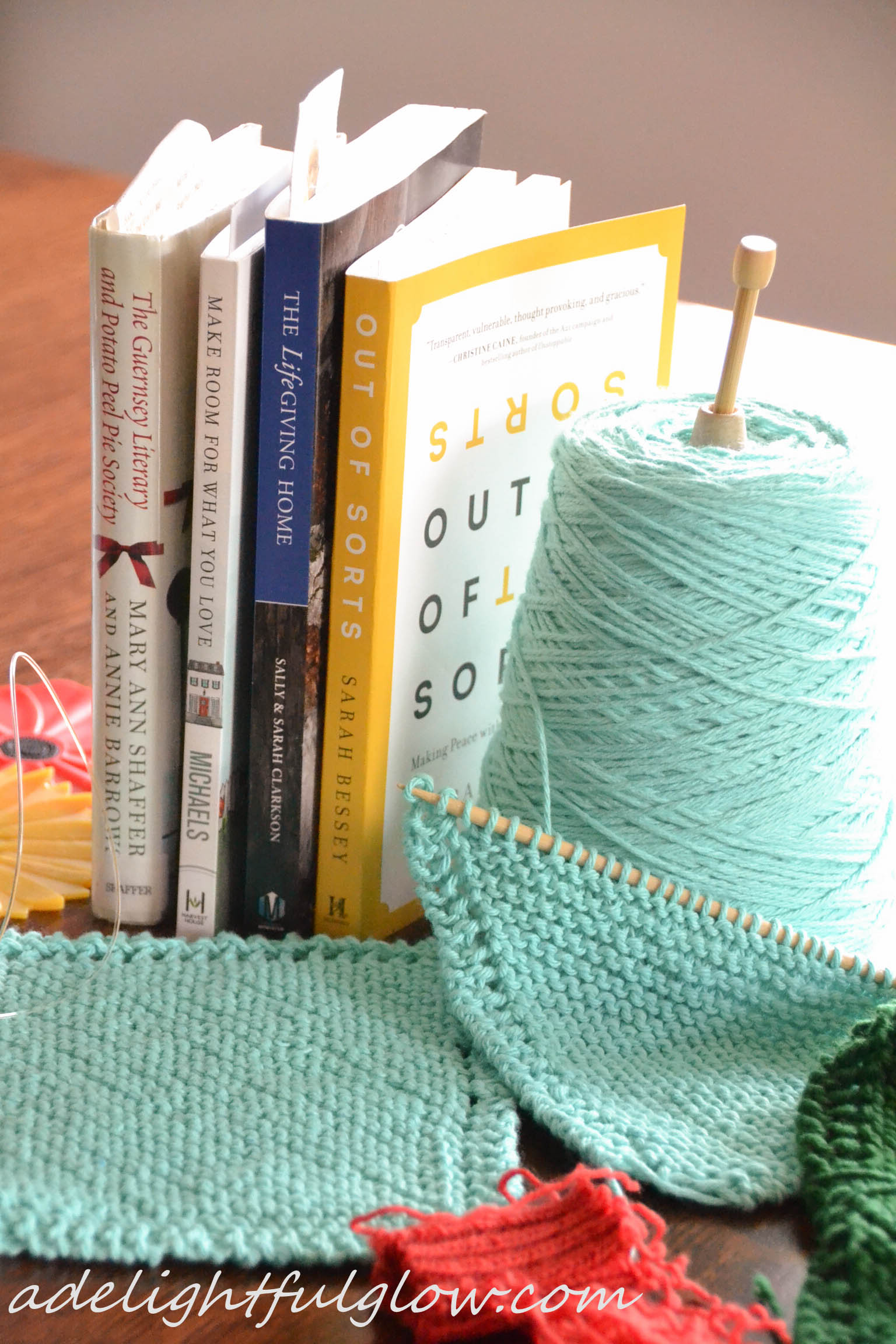 And just another shot of books and yarn! Because fun to set up and fun to take pictures and it all looks pretty together!