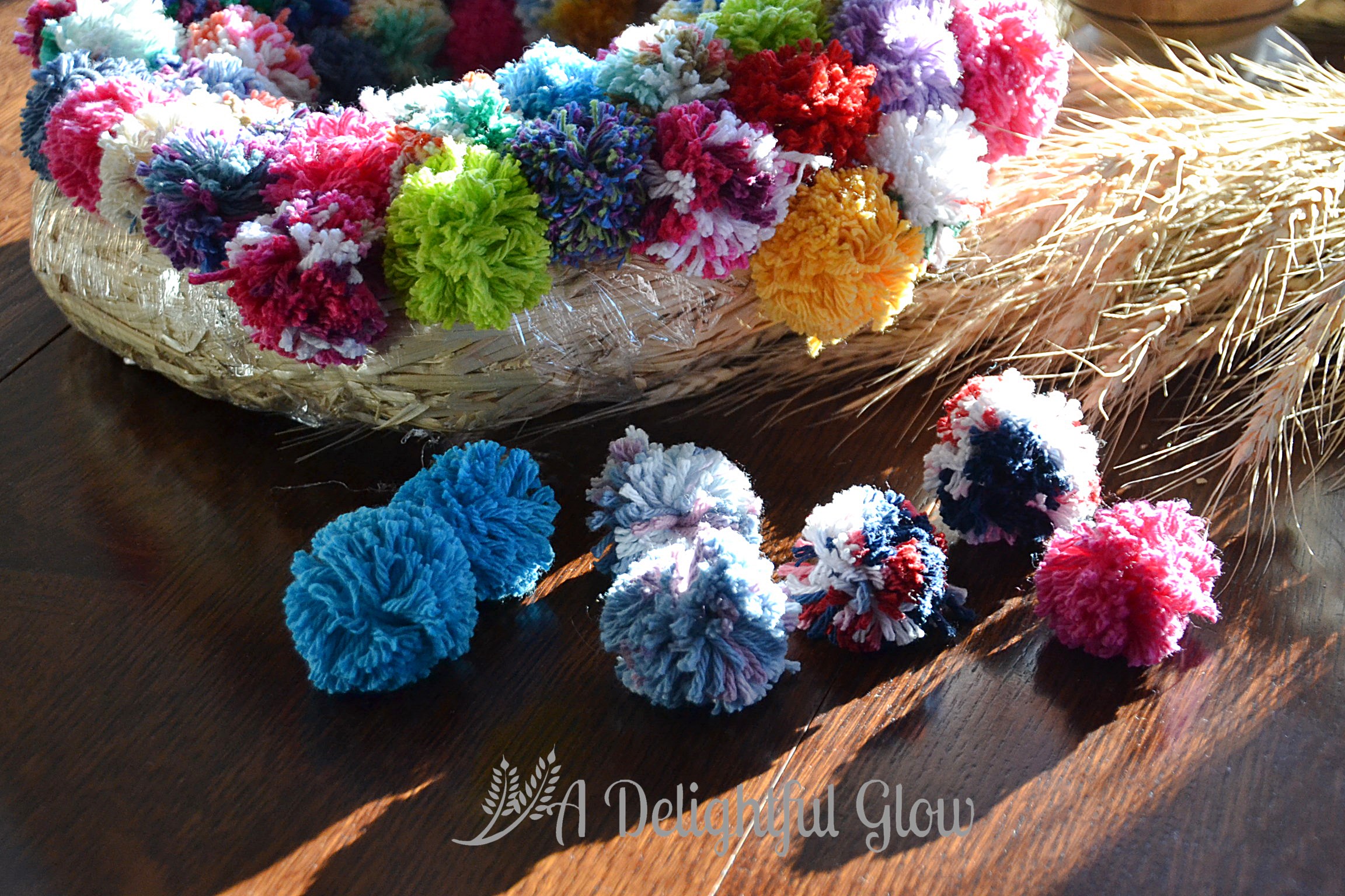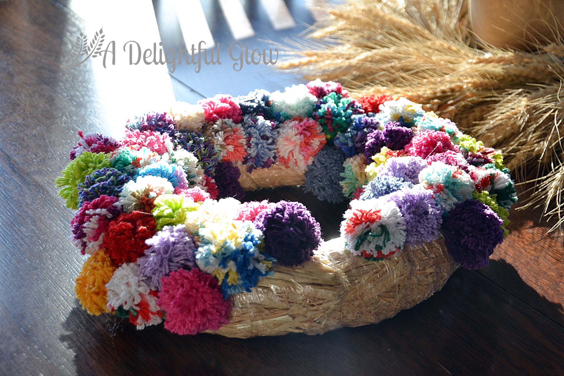 I’ve been using ends and small amounts of my cotton yarn for dishcloths to make these fun raggy-taggy pom-poms. I thought it might make a fun, quirky wreath. The other evening I used all the ones I had and started the wreath. Now back to pom-pomming to have enough to finish it out!