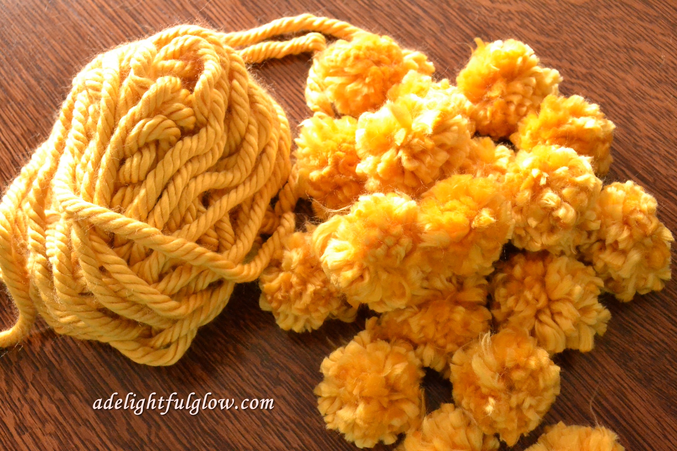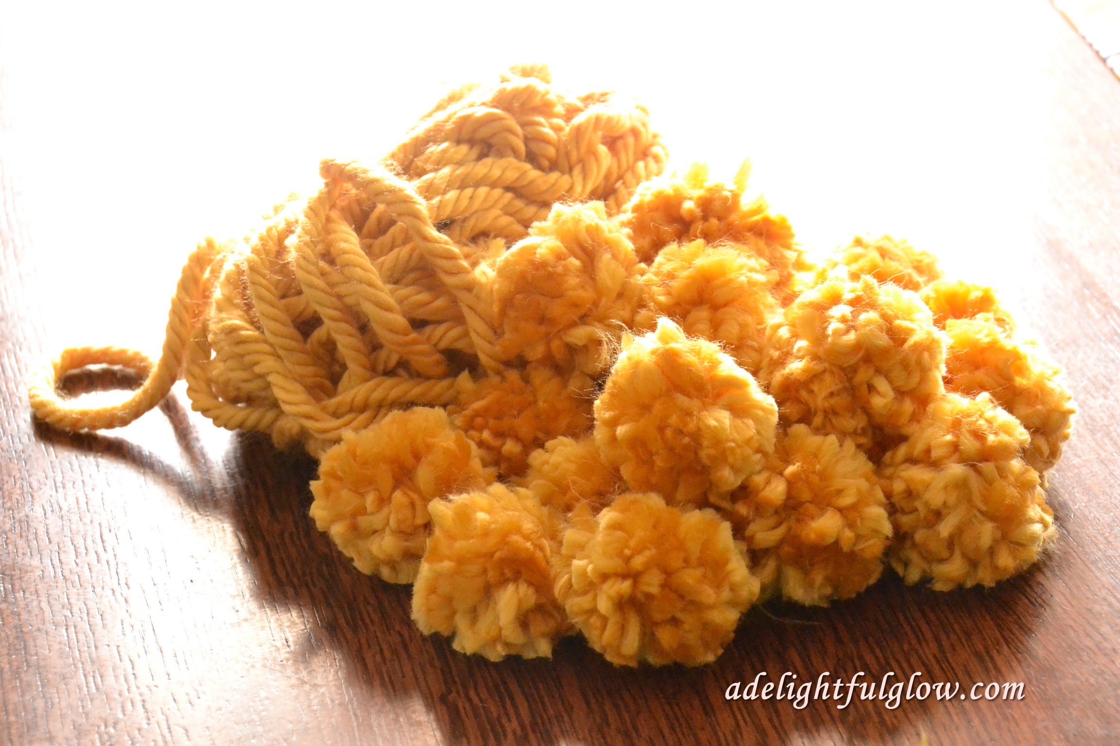 Yellow pom-poms. I wrapped and cut and tied and made a few more this week. I still plan to put together a smaller wreath with them if it all comes out like I’m thinking.