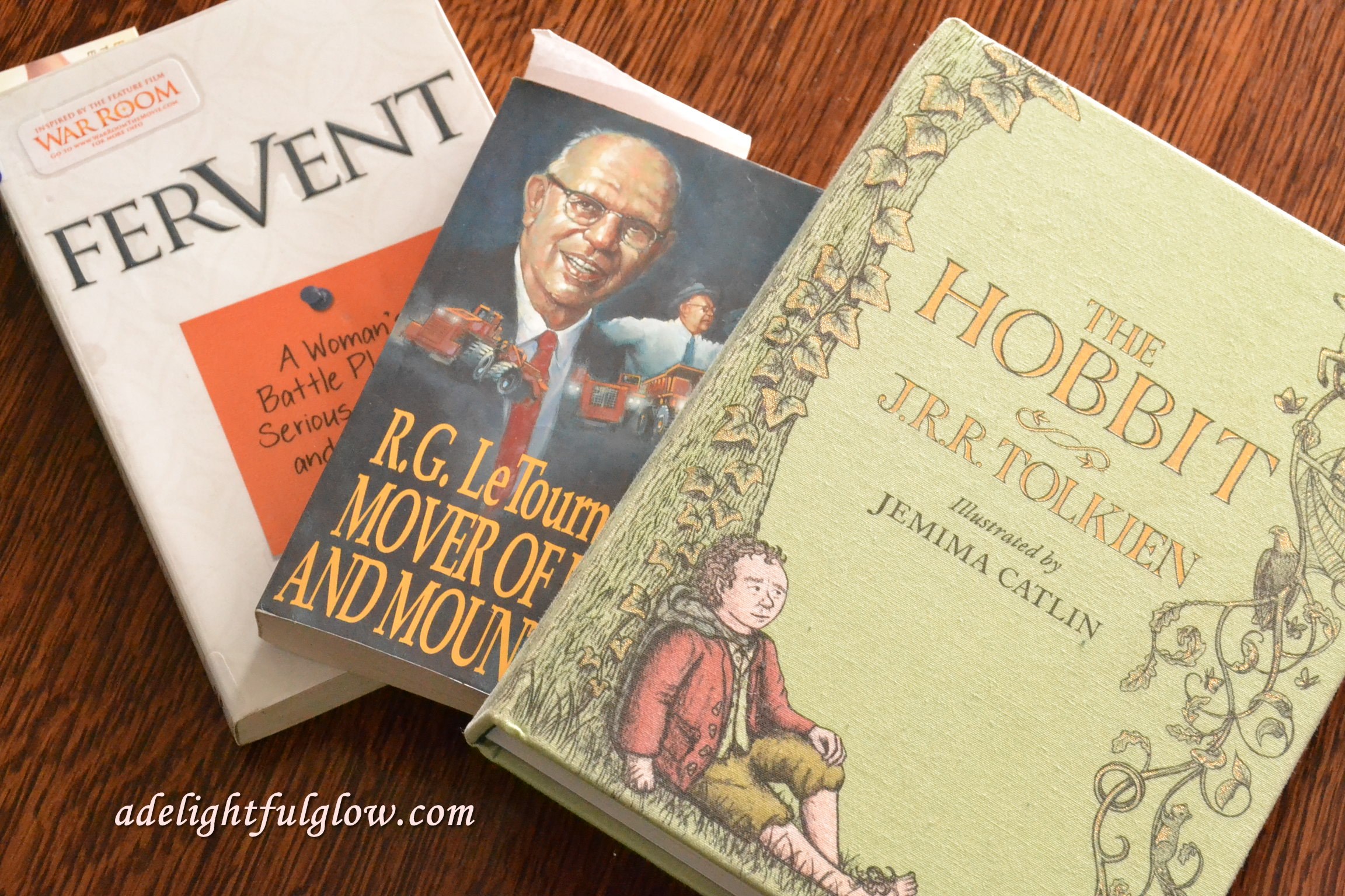 The three books I’ve found myself picking up the most often this past week are Fervent, Mover of Men and Mountains and The Hobbit.