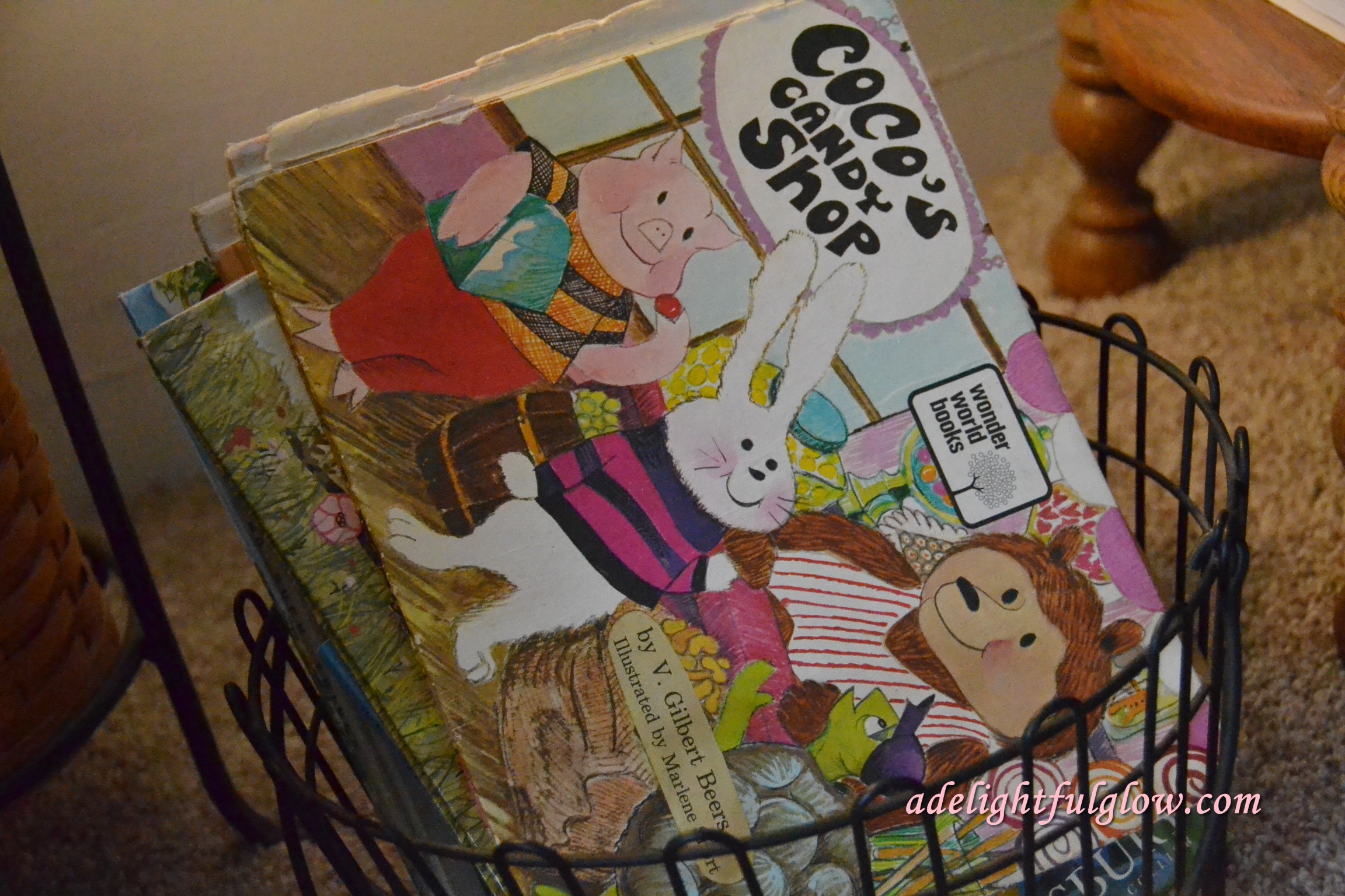 I threw this picture in too. I love, love children’s books and we have a basket of them in the living room. My Grandma had this book when I was a kid and I loved it. I was thrilled when I found this one at a thrift store when my own kiddos were small. I still love it! Probably partly because I’ve long thought an old-fashioned candy shop would be terribly fun to operate. Glass jars full of candy ~so pretty!