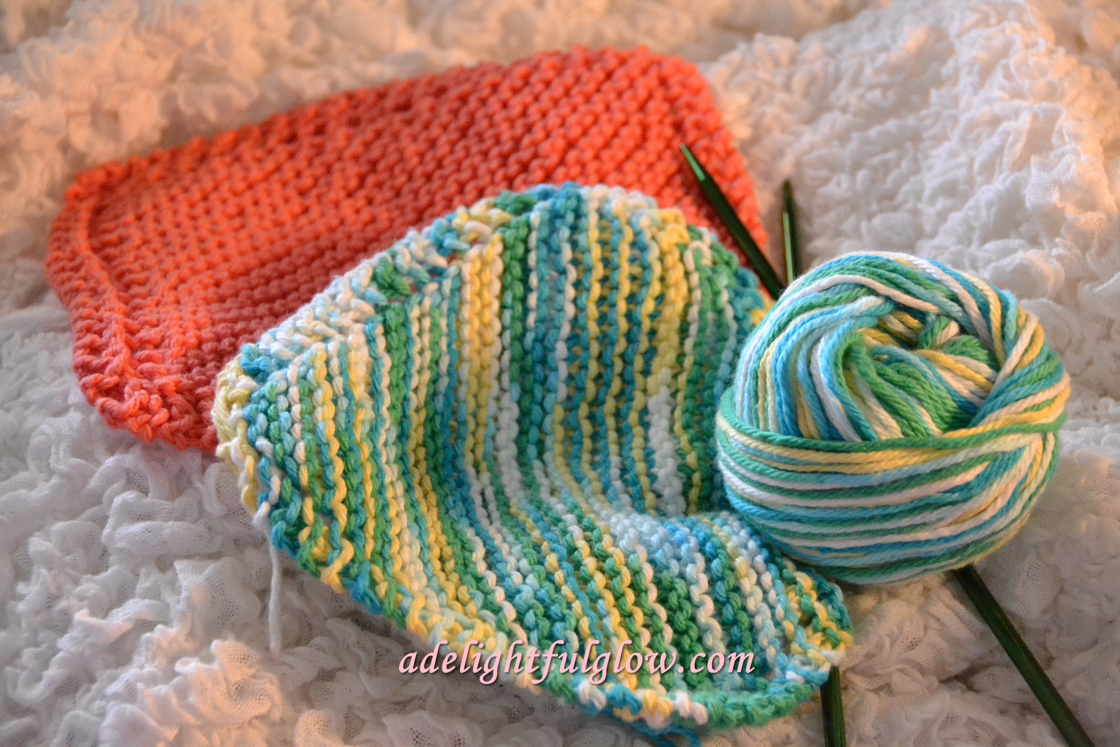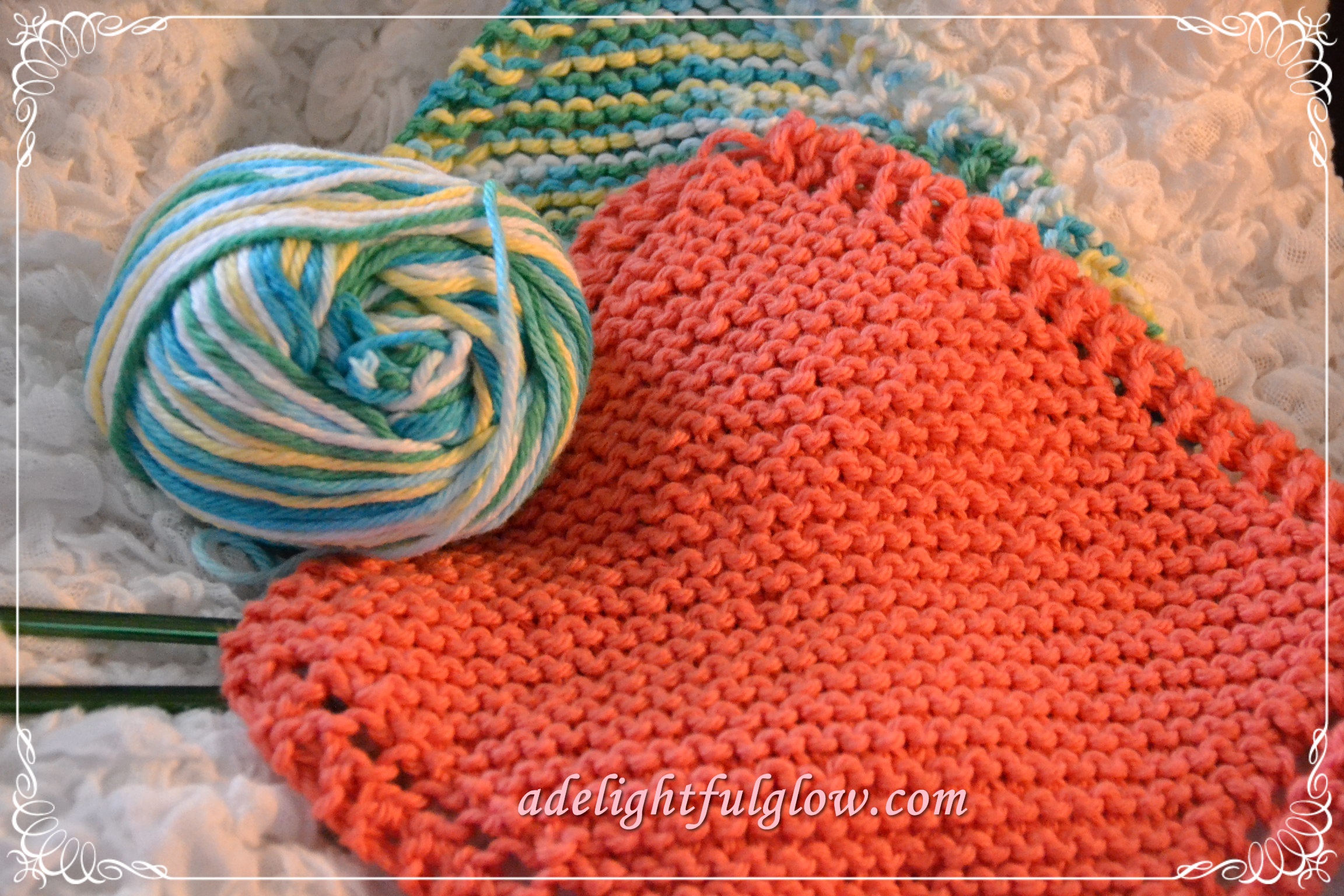 My very first ever giveaway here at A Delightful Glow was for hand-knitted dishcloths. You can read it from the archives over here and see the colors of the dishcloths in that post. I always enjoy seeing all the variety of yarn.