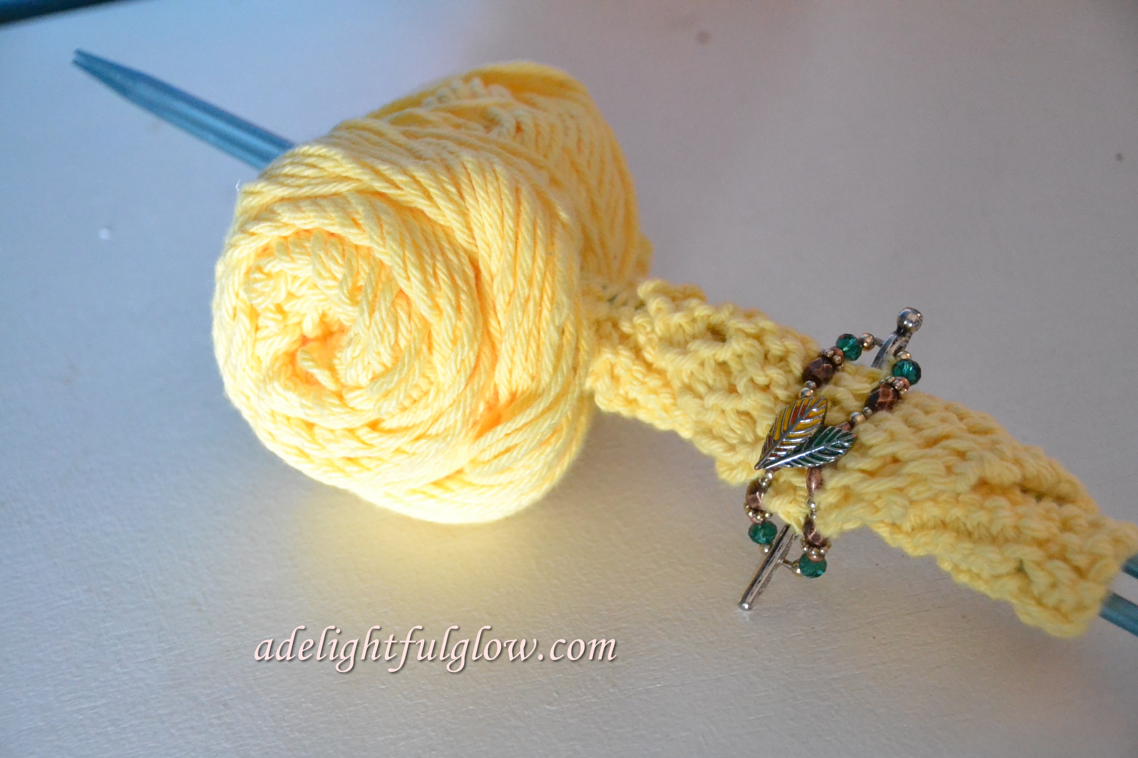 The leaves are so fun! I’ve knitted dishcloths for a long time, but I’m just venturing out in trying some new projects. Looking at all the fun ideas linked up at Yarn Along has inspired me!