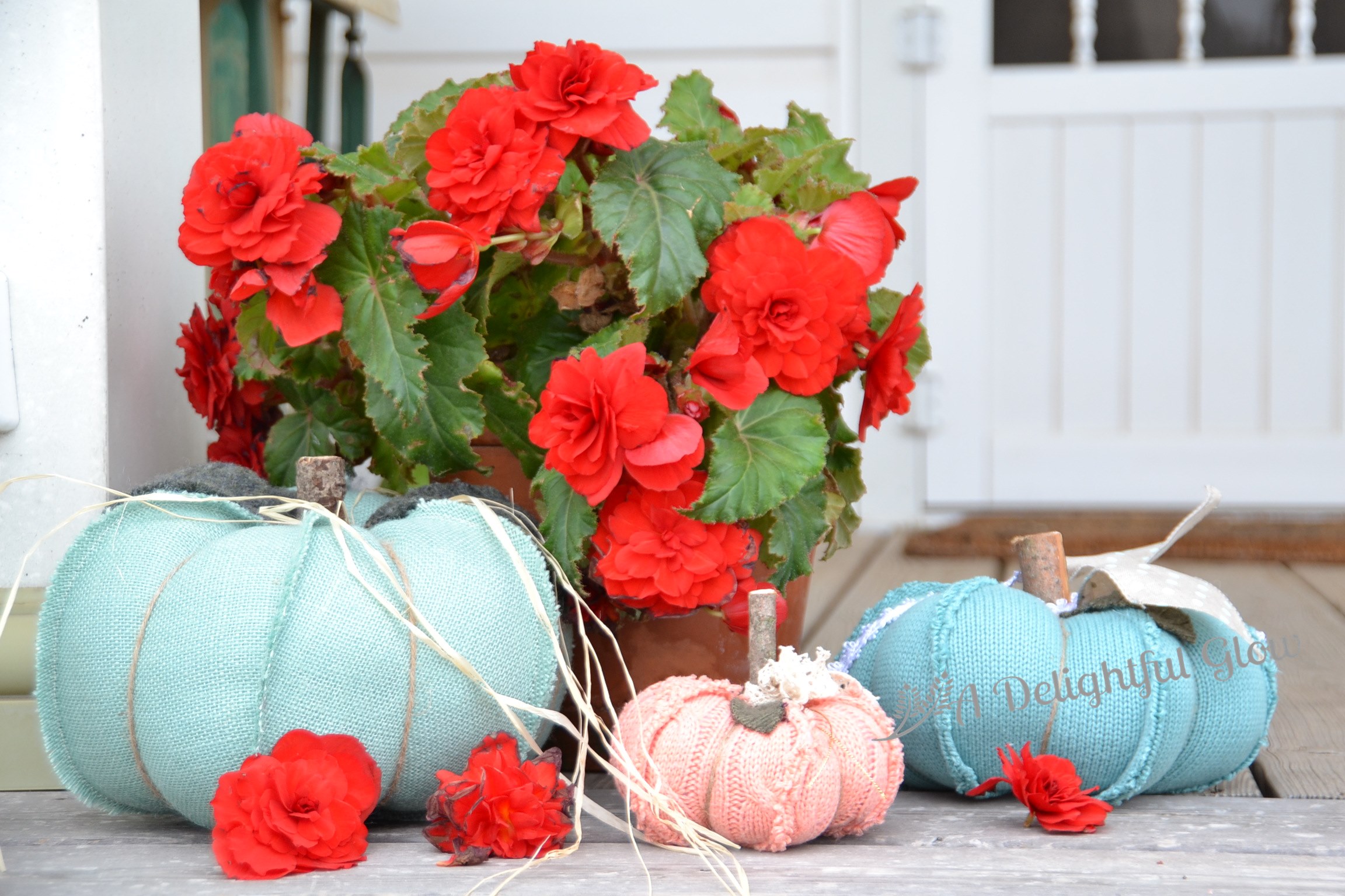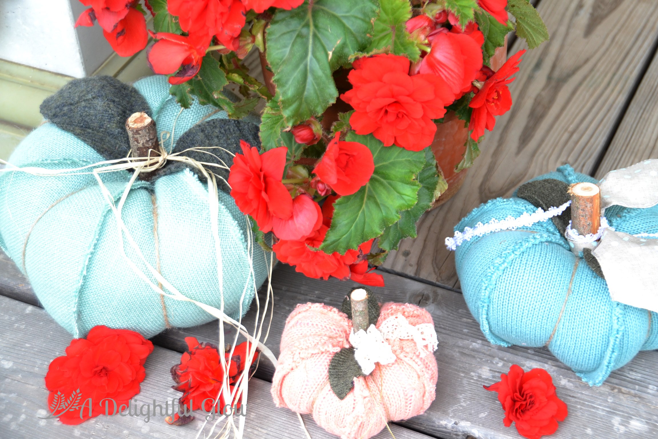 The large one is made from burlap. The other two are made from recycled, old sweaters! Isn’t that a fun idea!