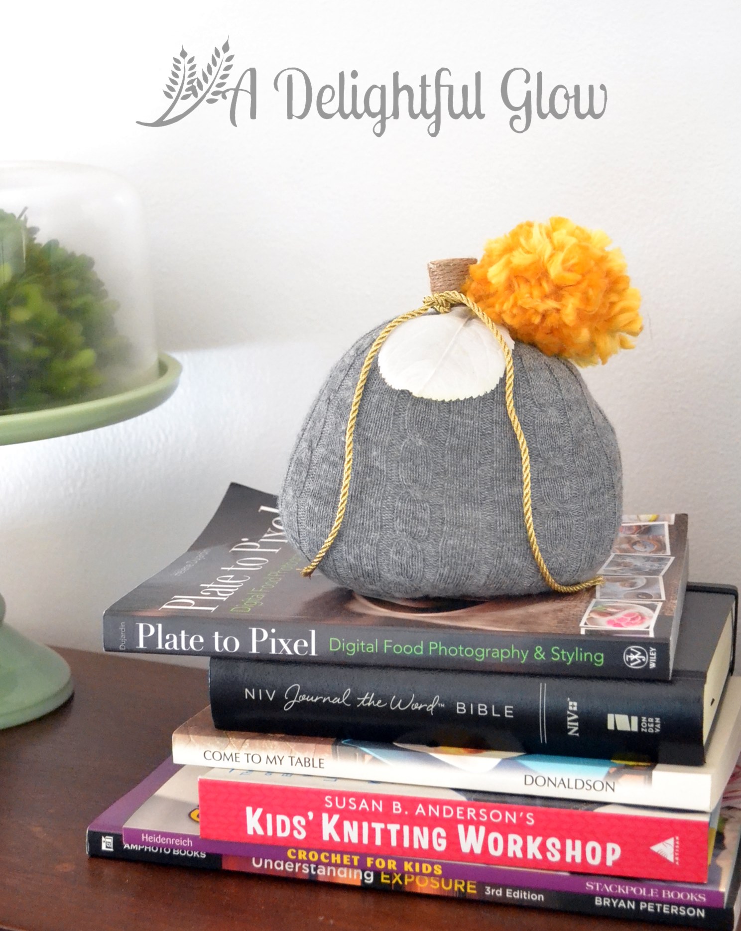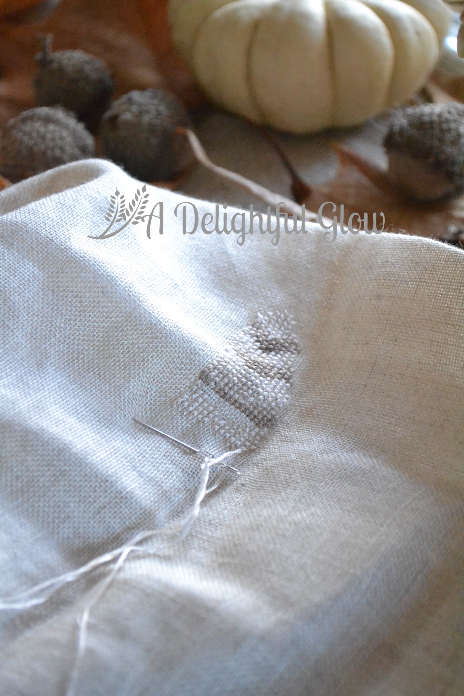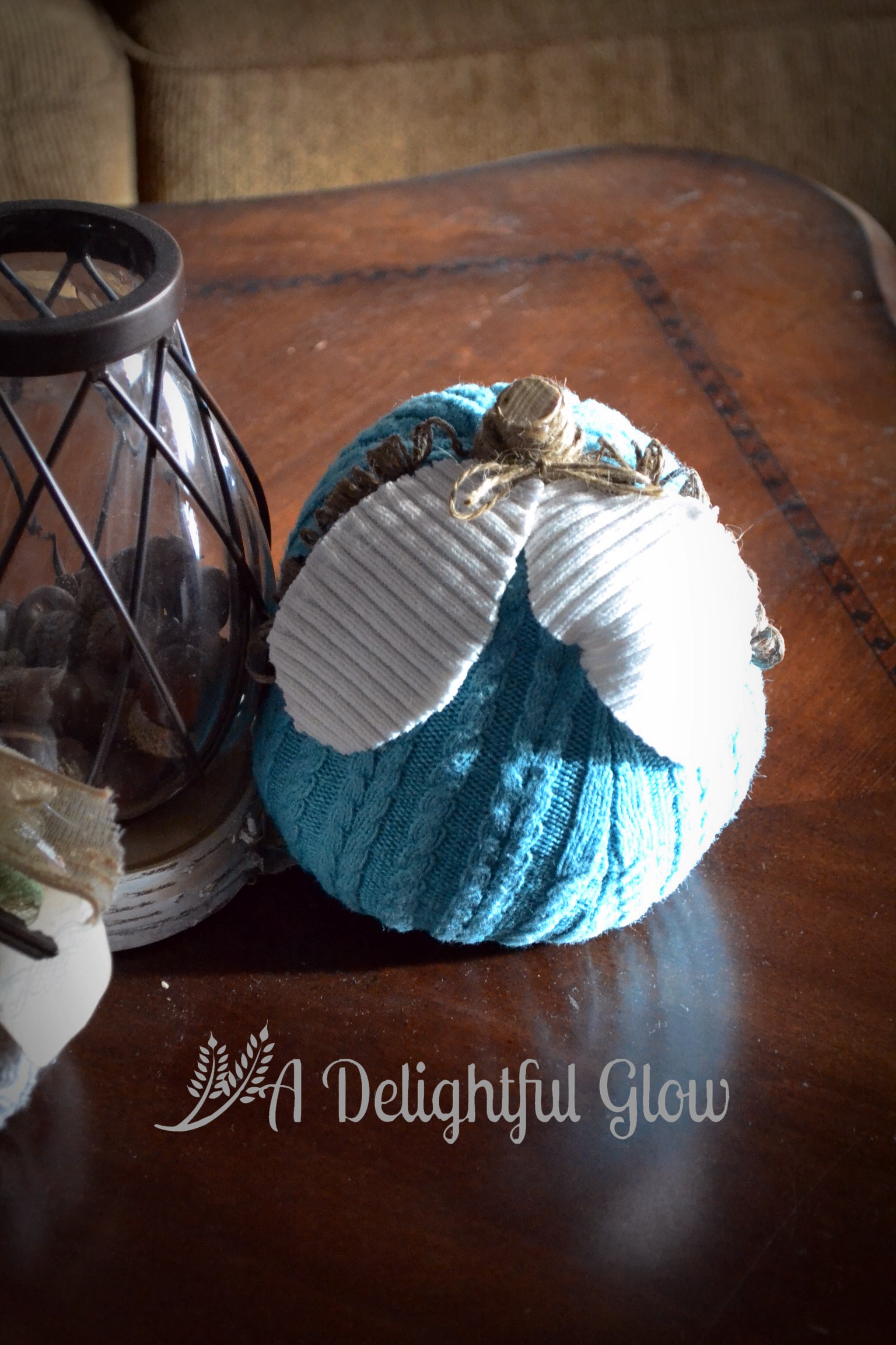 A couple of pictures featuring my Acorn Autumn Burlap Banner as well as the sweater pumpkins a friend and I made.