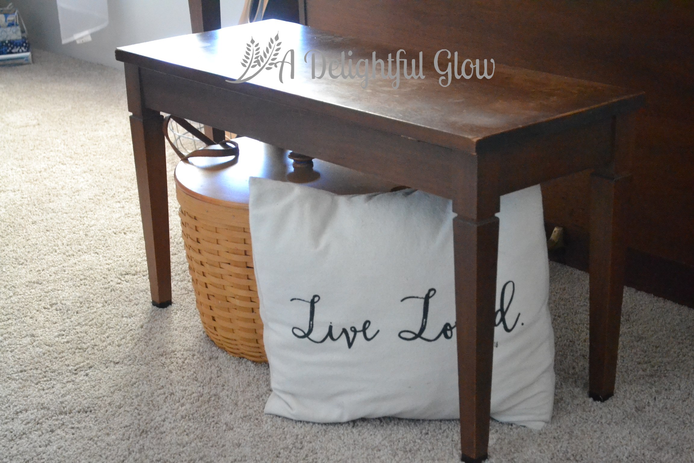 I stuck this basket and pillow under the piano bench this week and I really like them there.