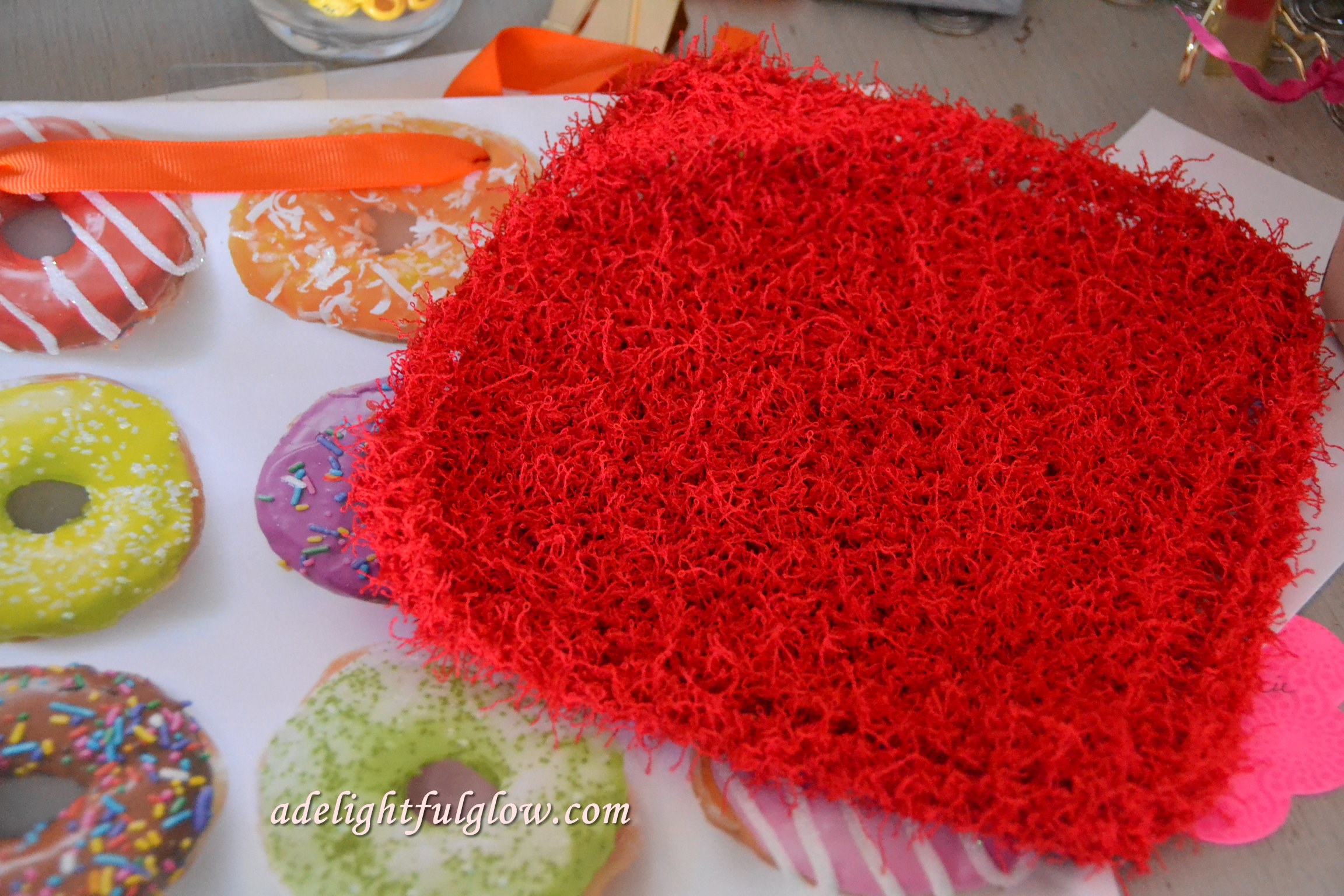 I’m making another heart-shaped dishcloth. I wanted to try one out of variegated yarn. Here’s the start of the heart!!!
