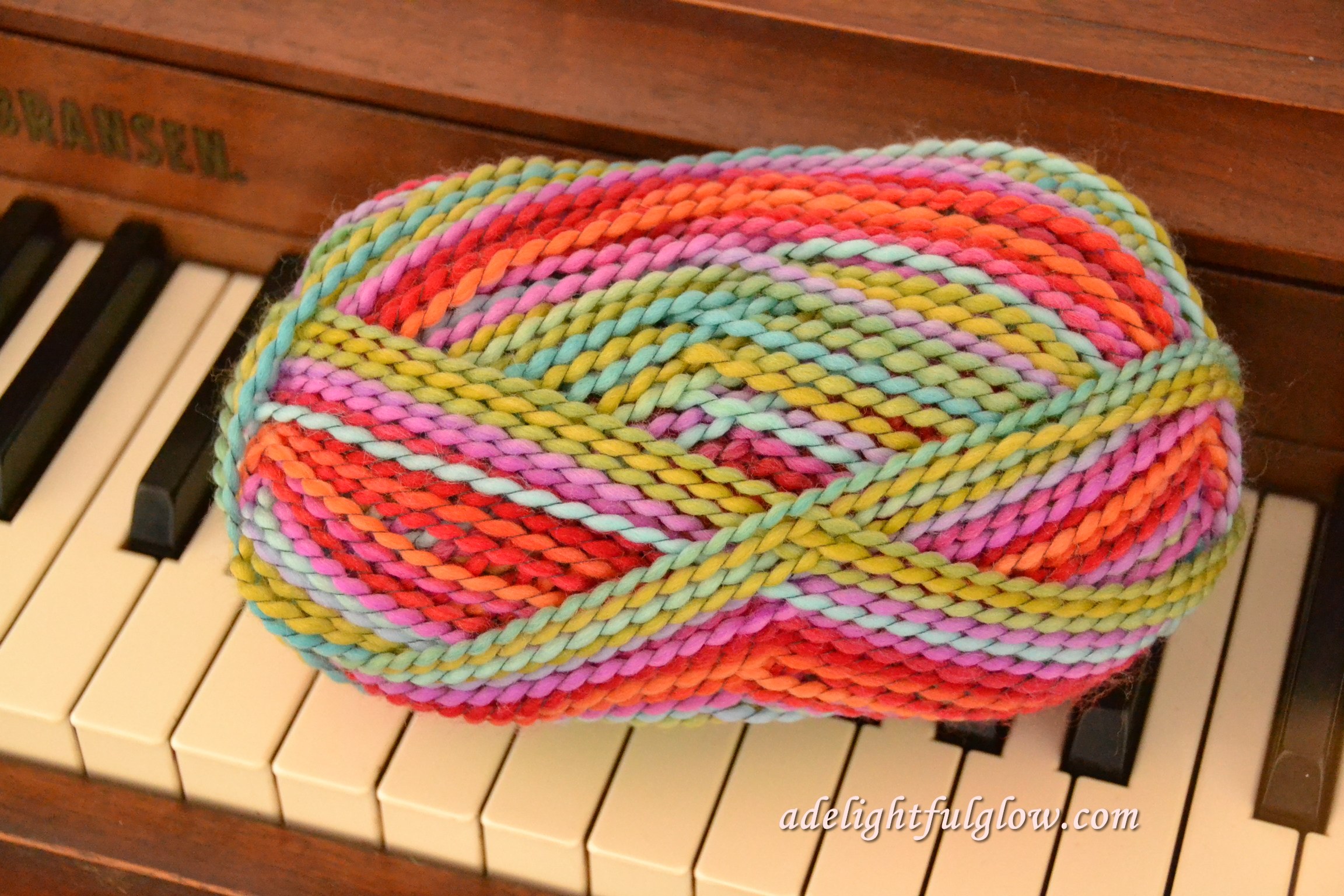 Look at this new yarn I picked up at Hobby Lobby! I’m all swoony about it. Absolutely love the colors in it and it has a fun texture and feel. I have a new knitting project book ~coming further down in this post ~ and it has some patterns for some mason jar cozies. I think I’m going to try one out of this yarn.