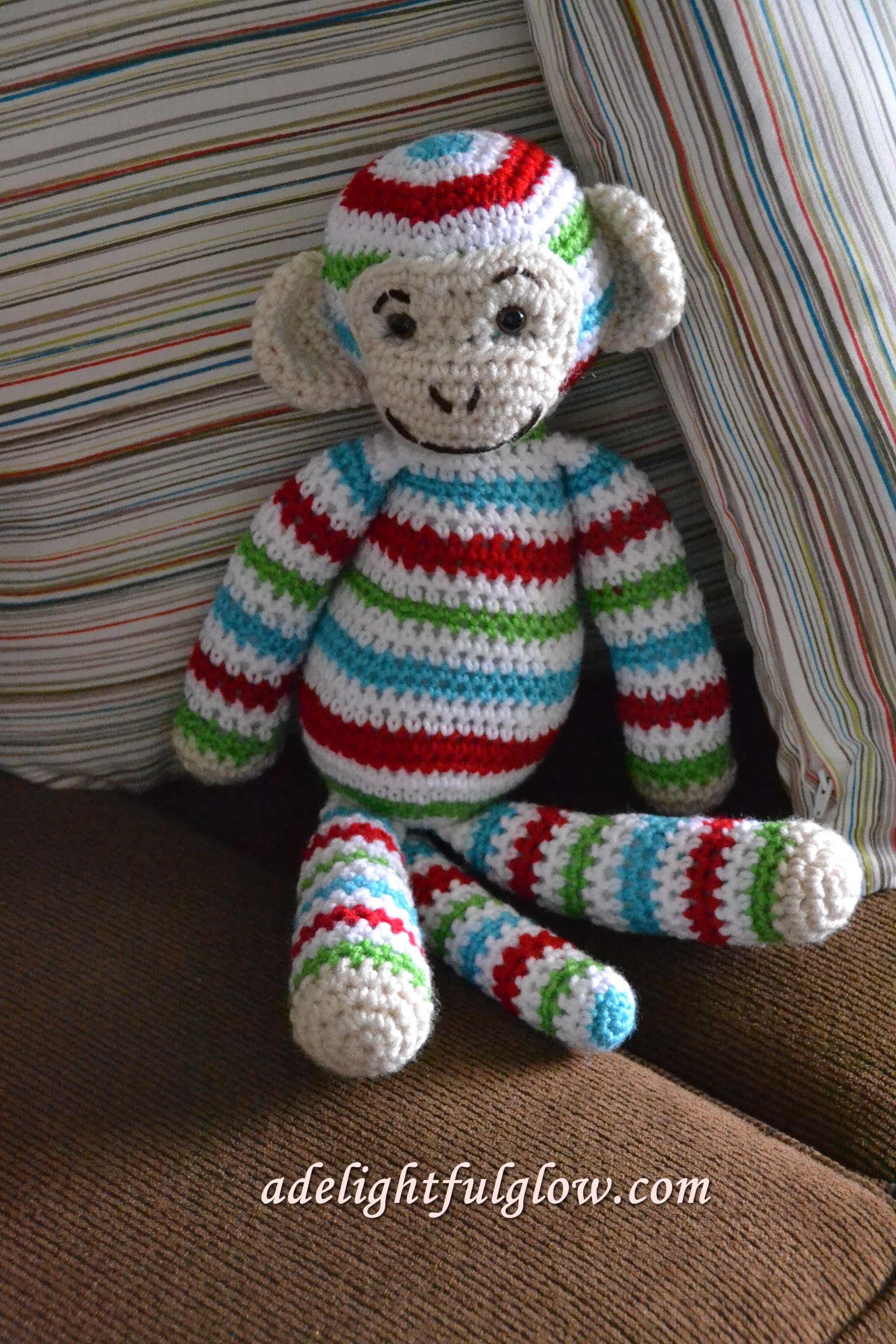 He was crocheted and donated by a young girl. I don’t know her age for sure, but I’m guessing from ten to twelve. So fun!