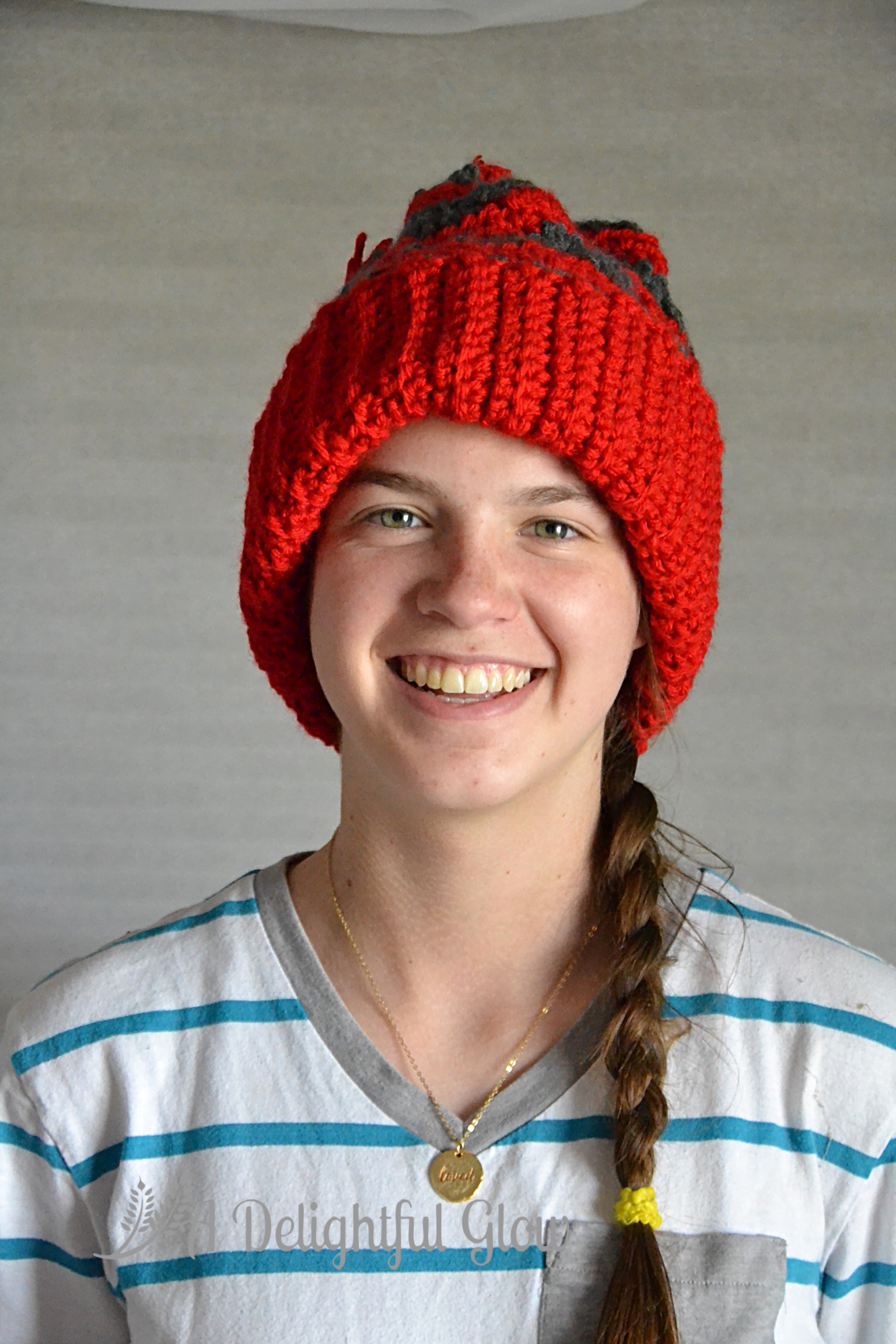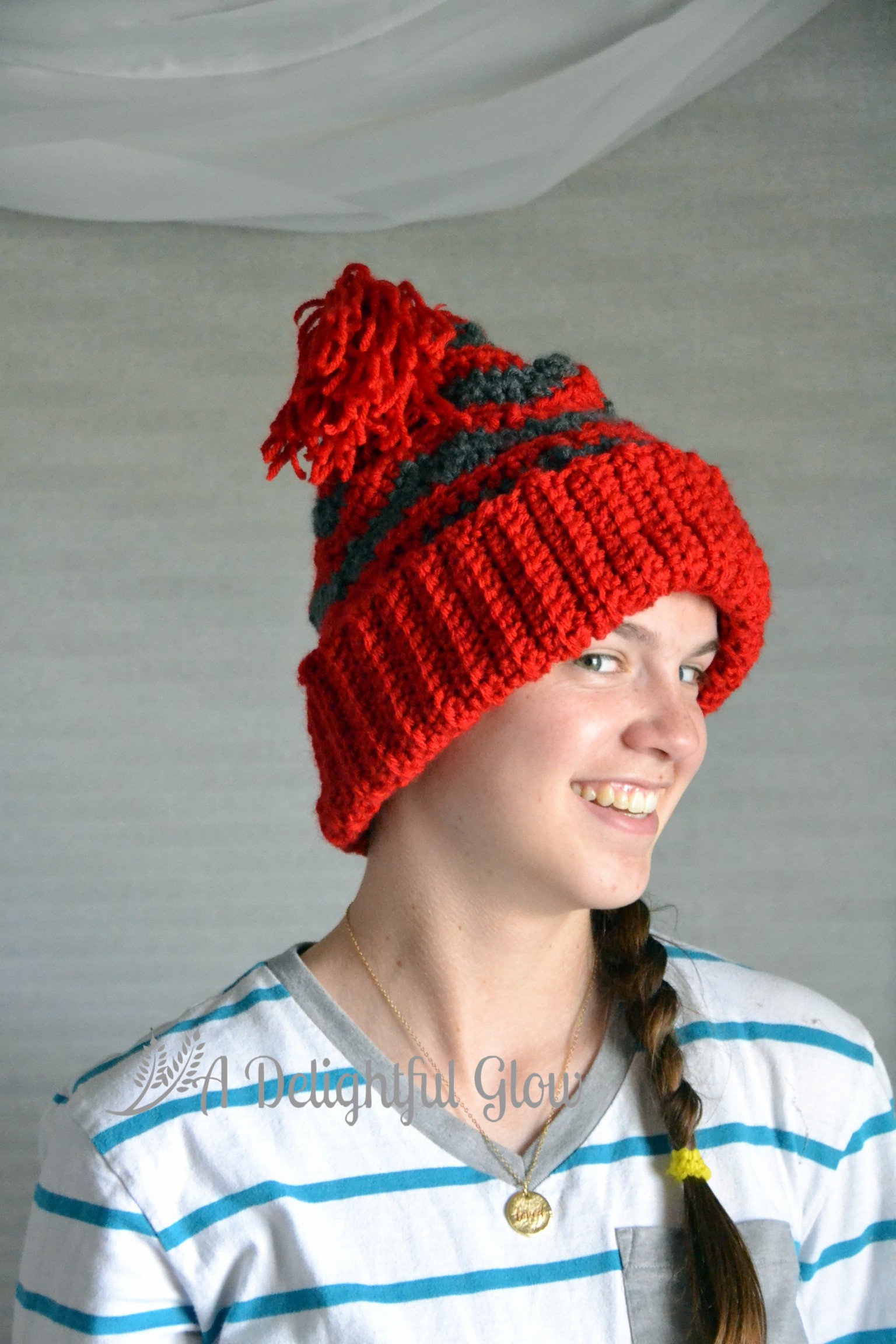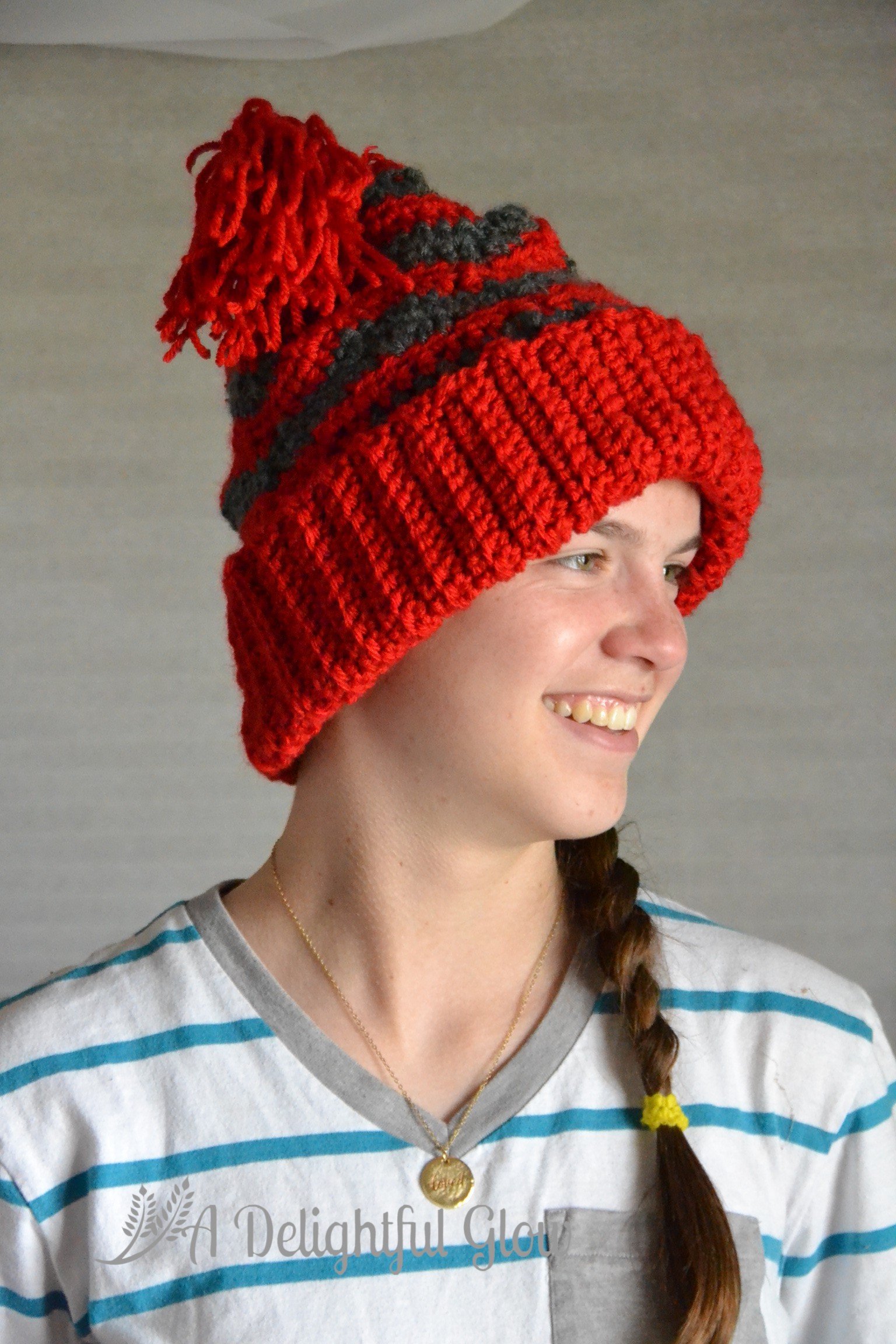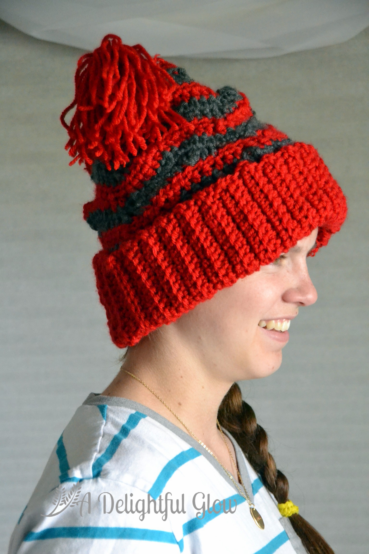 Last week I showed you the hat. This week we managed to snap a few photos of my dear girl in her hat! She proclaimed it a Dr. Seuss story hat. 🙂