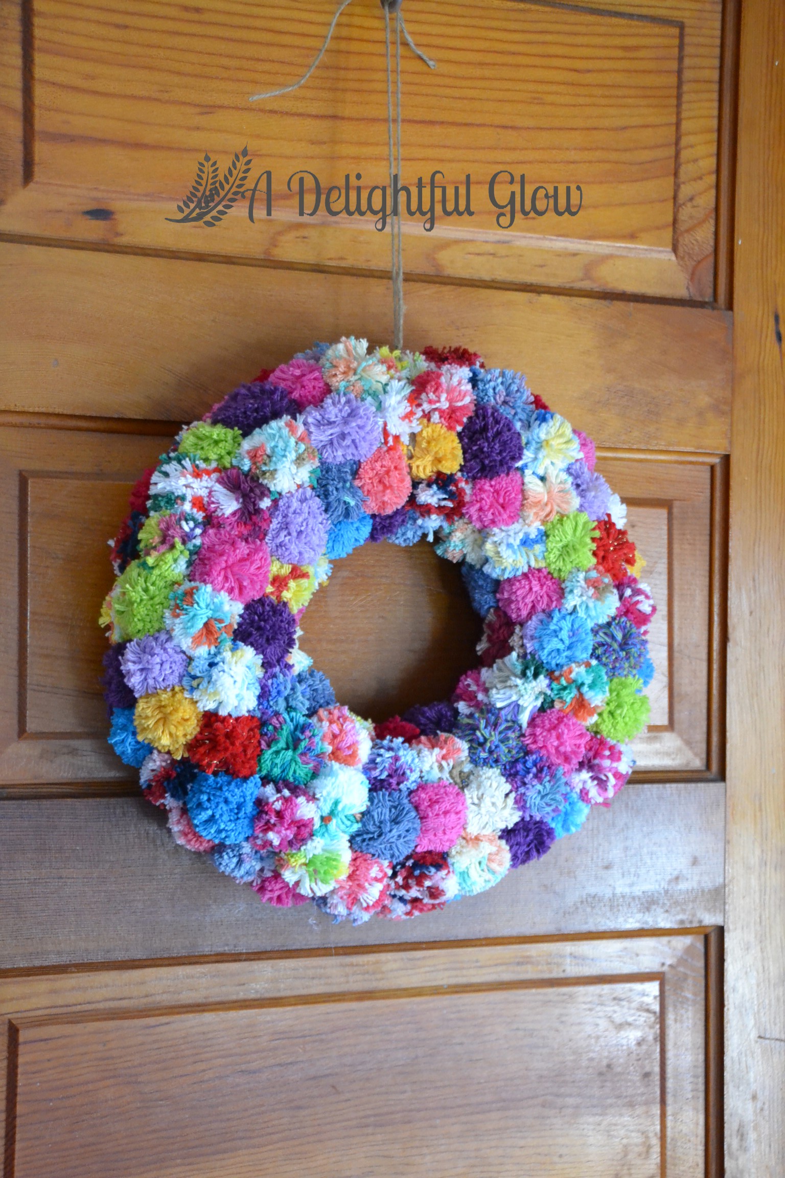 I truly love how this raggy-taggy one came out. It’s kind of quirky and happy and eccentric. If a pom-pom wreath can be such things. Apparently they can. Because this one definitely is!