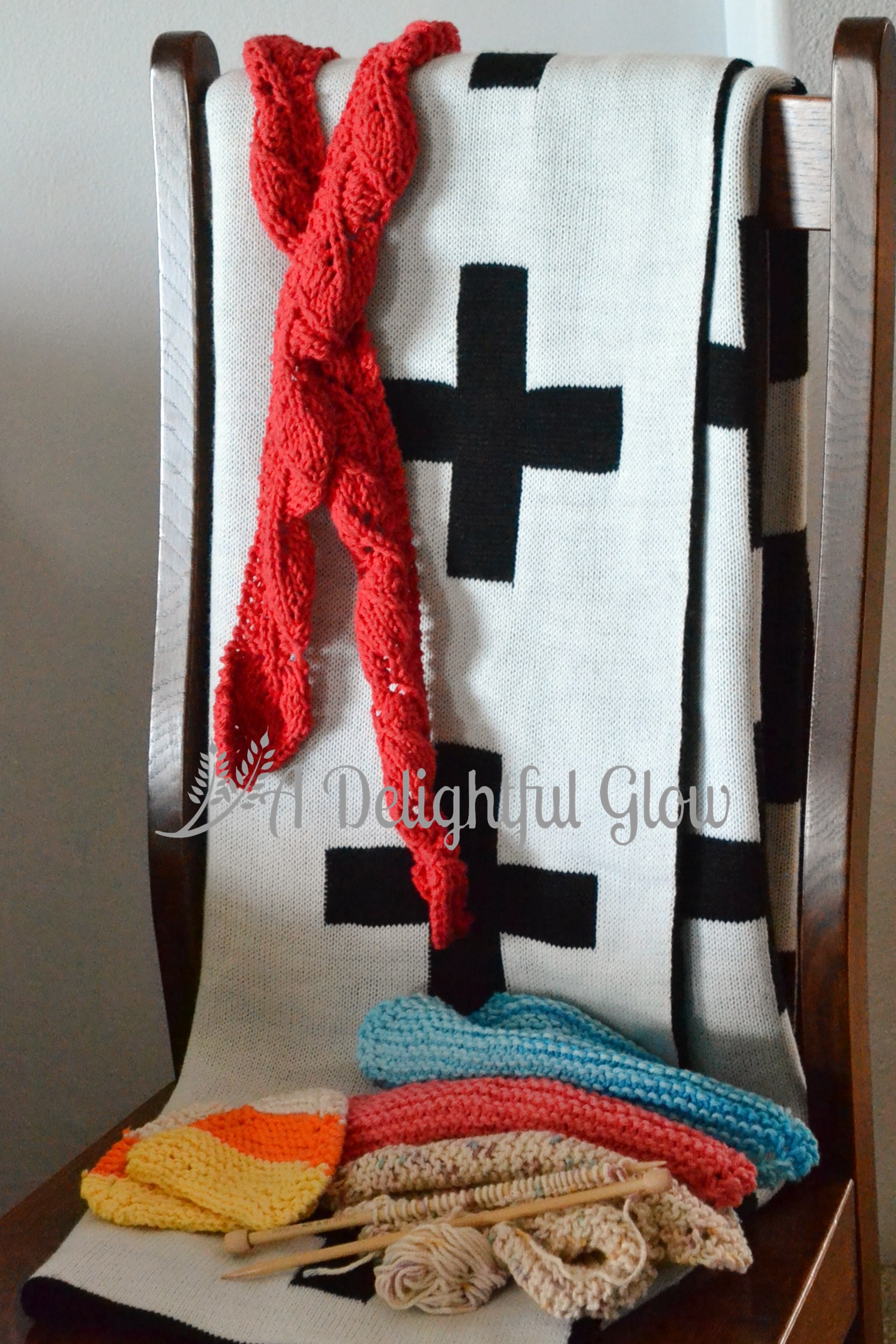 I finished my leaf scarf! Yay! Find the free pattern here. Two more candy corn coasters and a couple of dish cloths. AND I did work on my cross stitch a little yesterday, though I don’t have any pictures of it. The black and white blanket is from Modern Burlap, should you be wondering. I love, love, love their store.