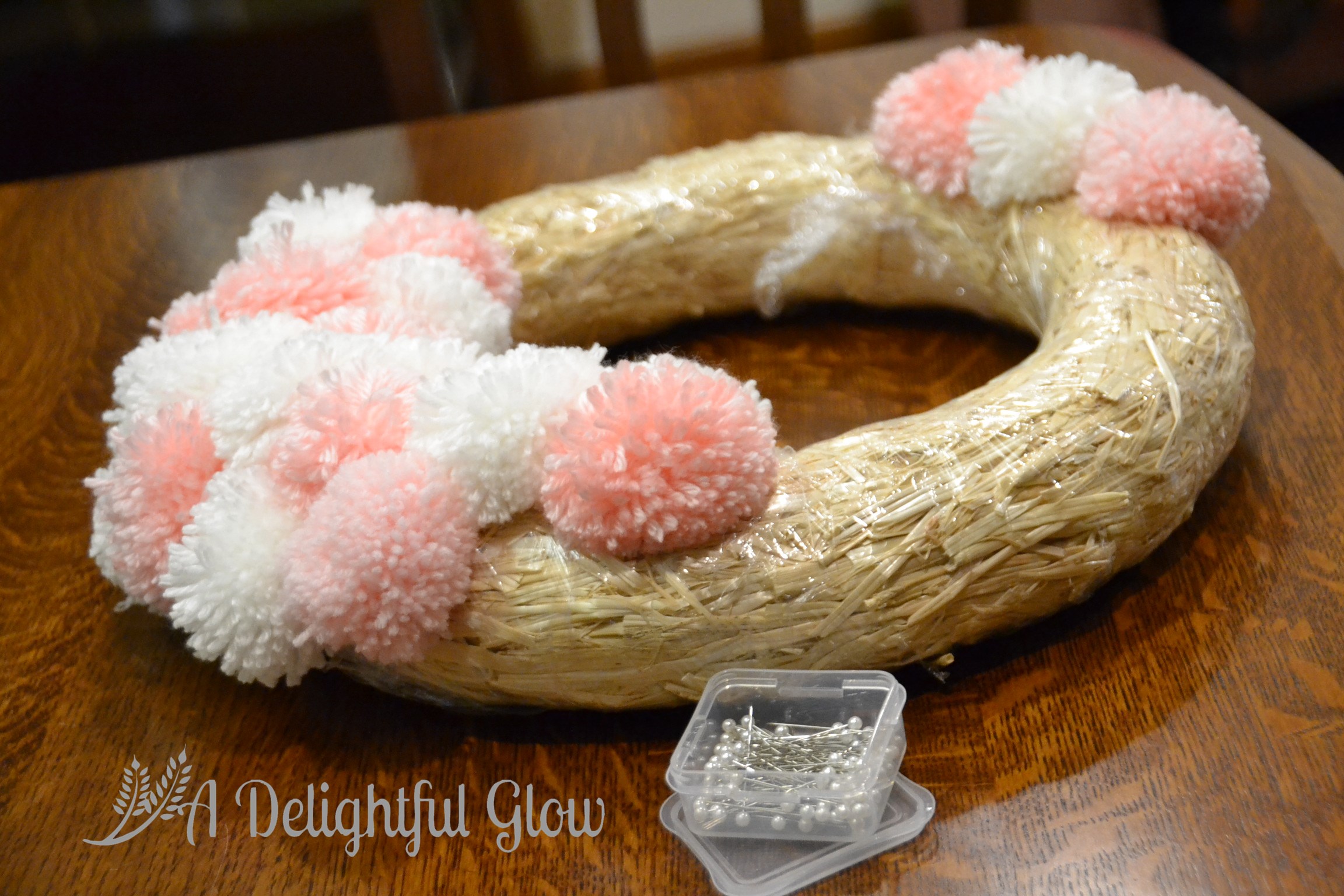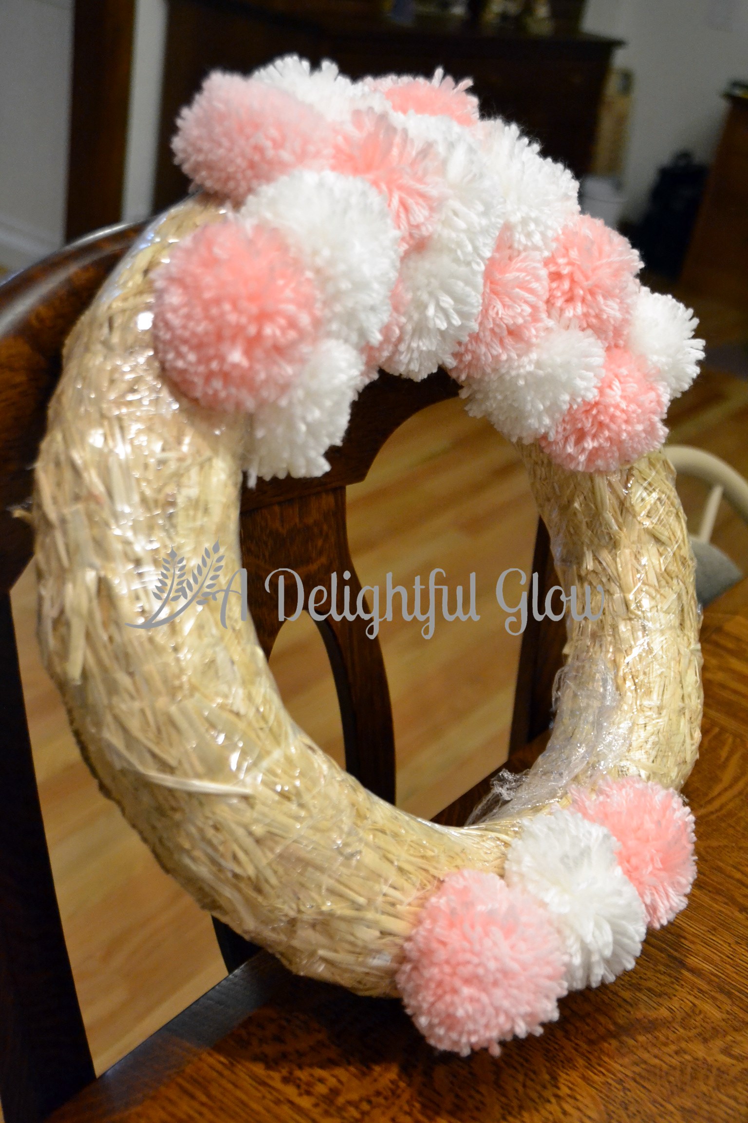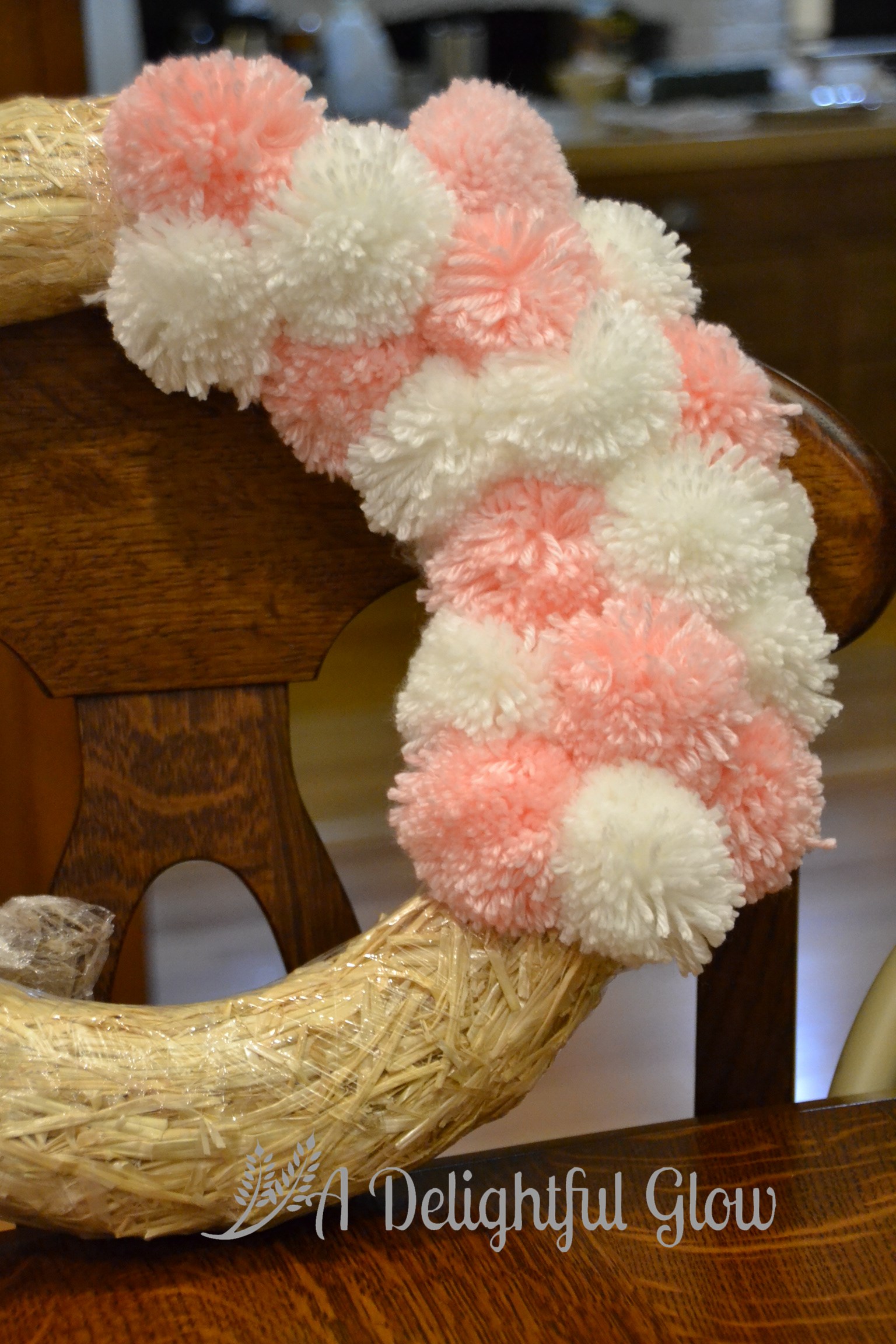 “A pom-pom wreath!” I proclaimed suddenly. “You need a pink and white pom-pom wreath!”