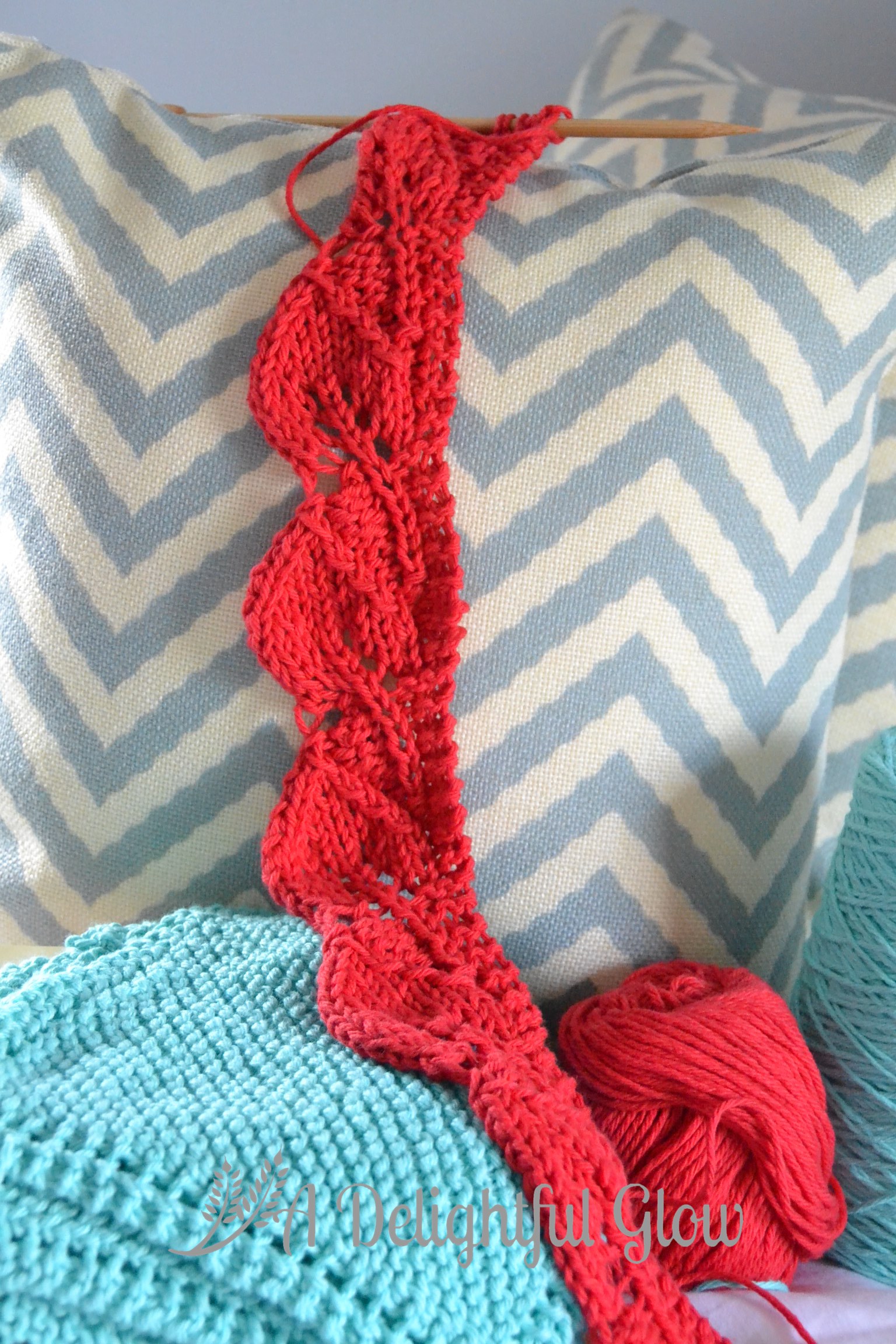 I started a scarf. I wasn’t really planning to, but I popped in over at Irisheyesknitters blog from a link on Yarn Along and loved the Leaf scarf she was working on. You can find the pattern on Ravelry here and it’s free!