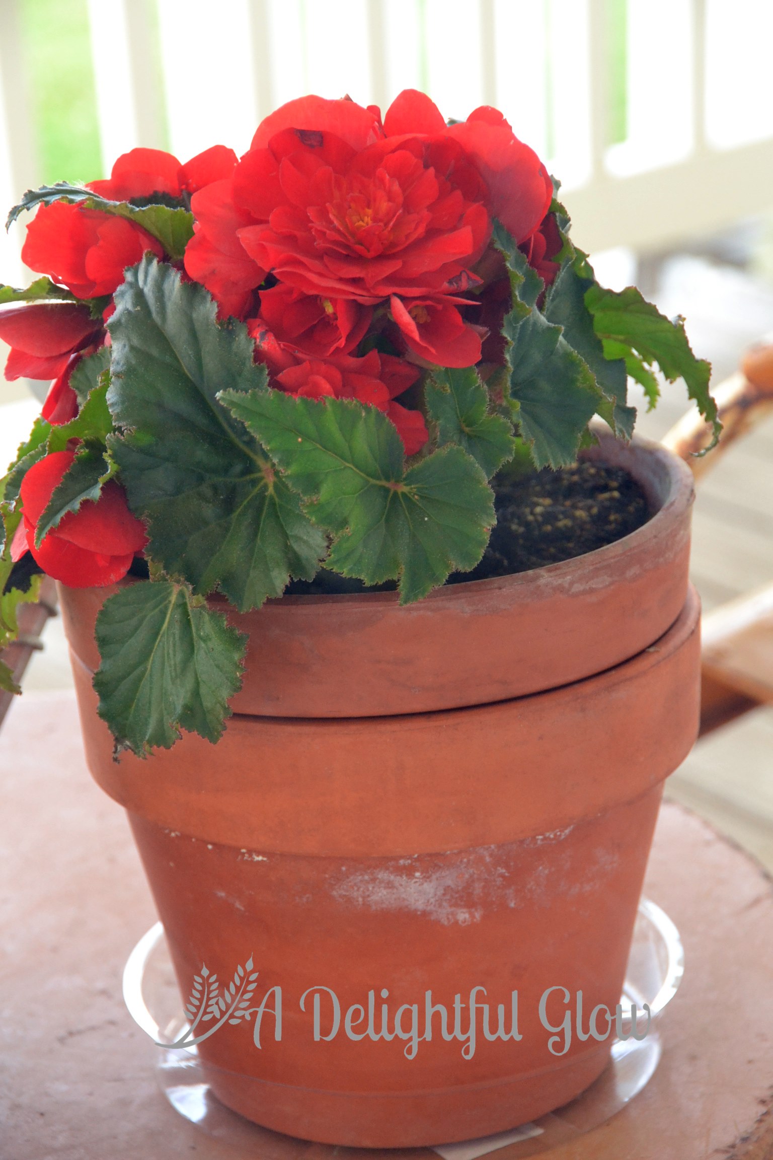 AND…………nothing to do with Yarn Along, but I’m very much enjoying this cheery flowerpot on my porch……………..