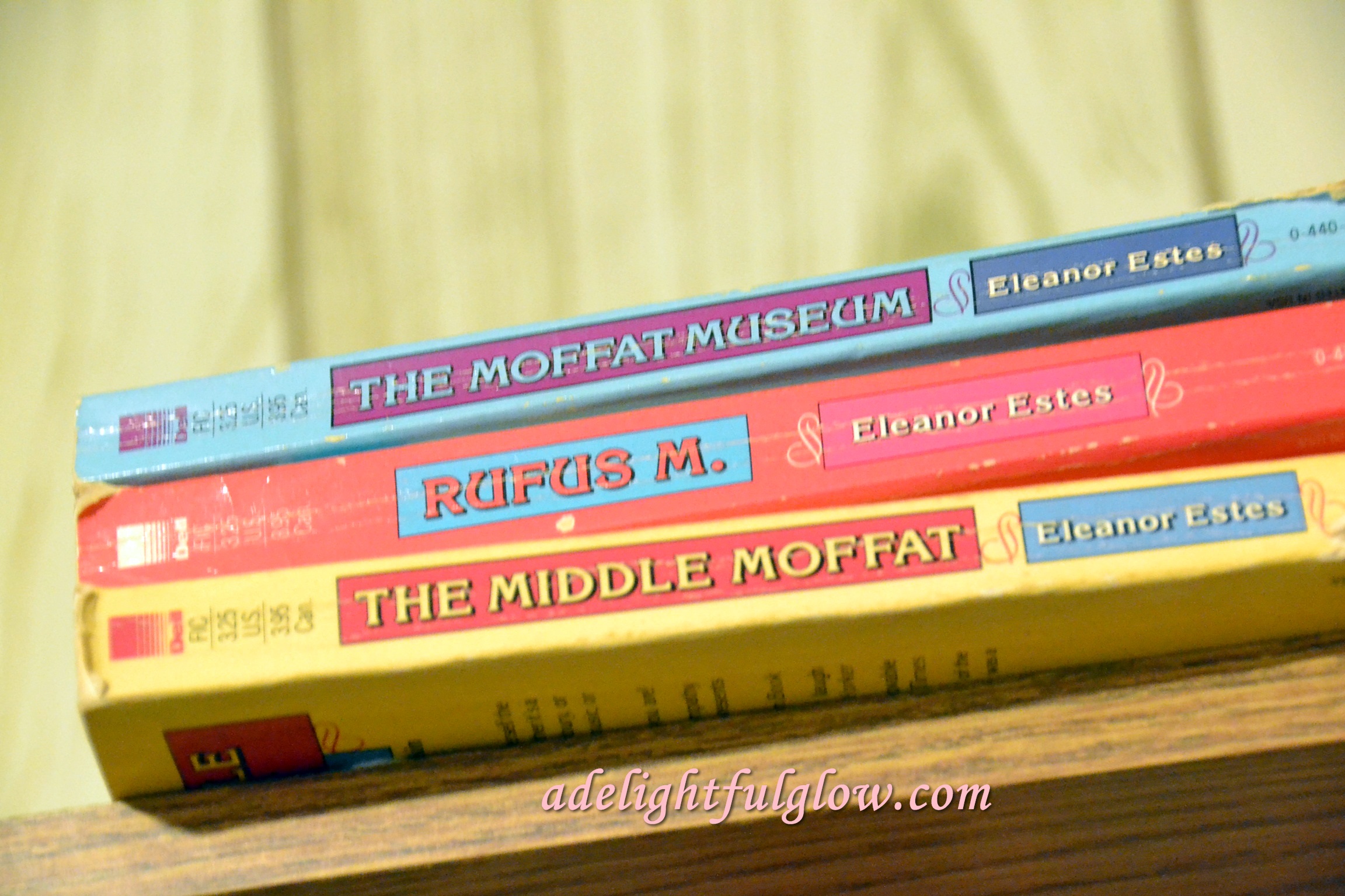 I snapped this pic of my well loved books. Our books are often a jumble, and I’m not sure where The Moffats is right now.