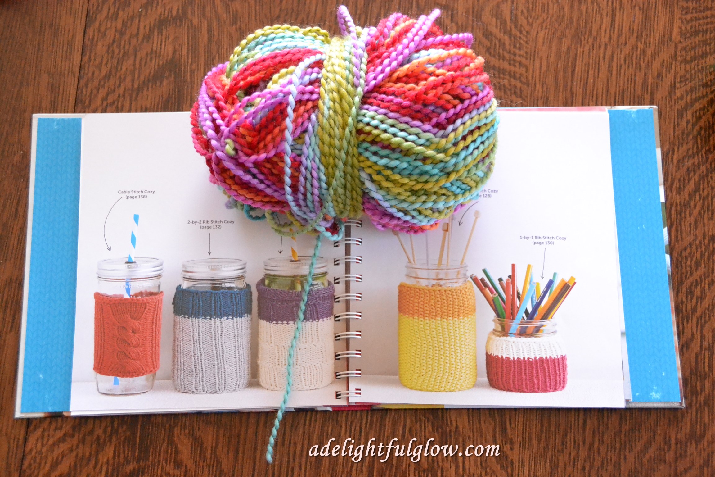 I want to make a jar cozy with this yarn. I did start in on it and then I had my yarn caught funny around my circular needle and took it all out. Going to start again when I get a chance! I want to try the cable one. The cable stitch is a new thing to me.
