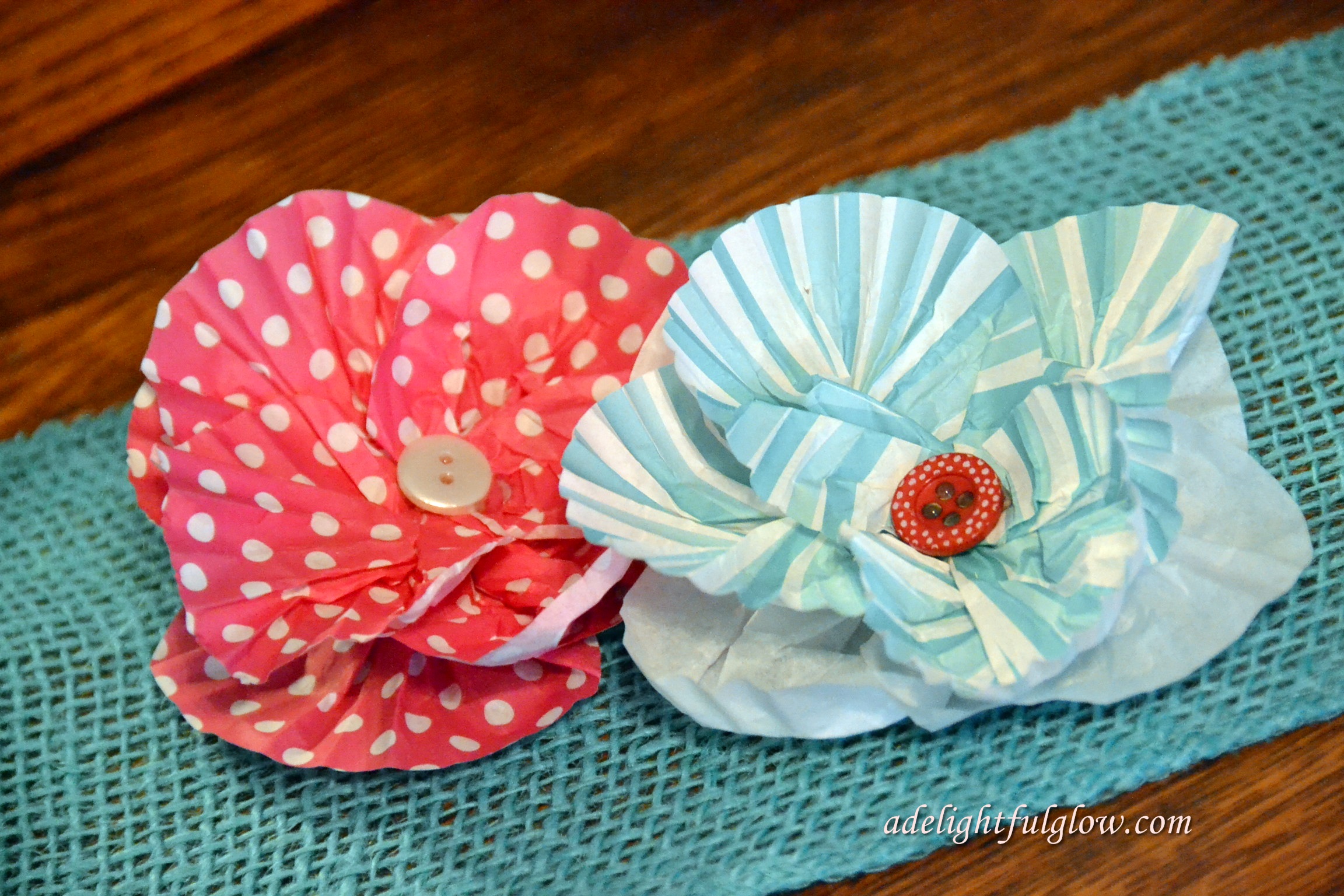 Hop over here if you want to see a Cupcake Liner Flower Tutorial. And pin it on Pinterest for later use!