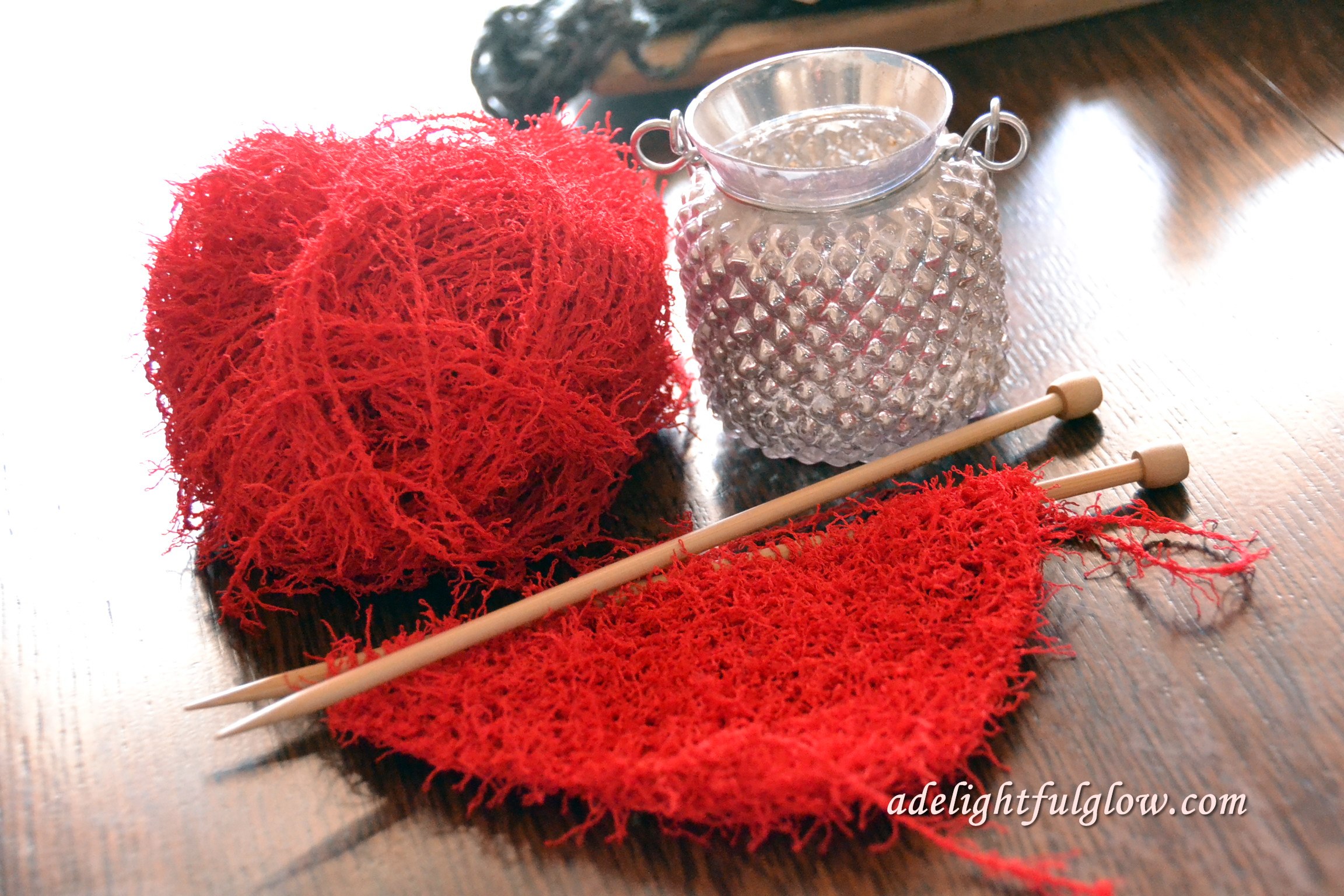 I picked up some scrubbie, scratchie type red yarn and I started a regular dishcloth with it. It’s going to be interesting to use. Looking forward to trying it.