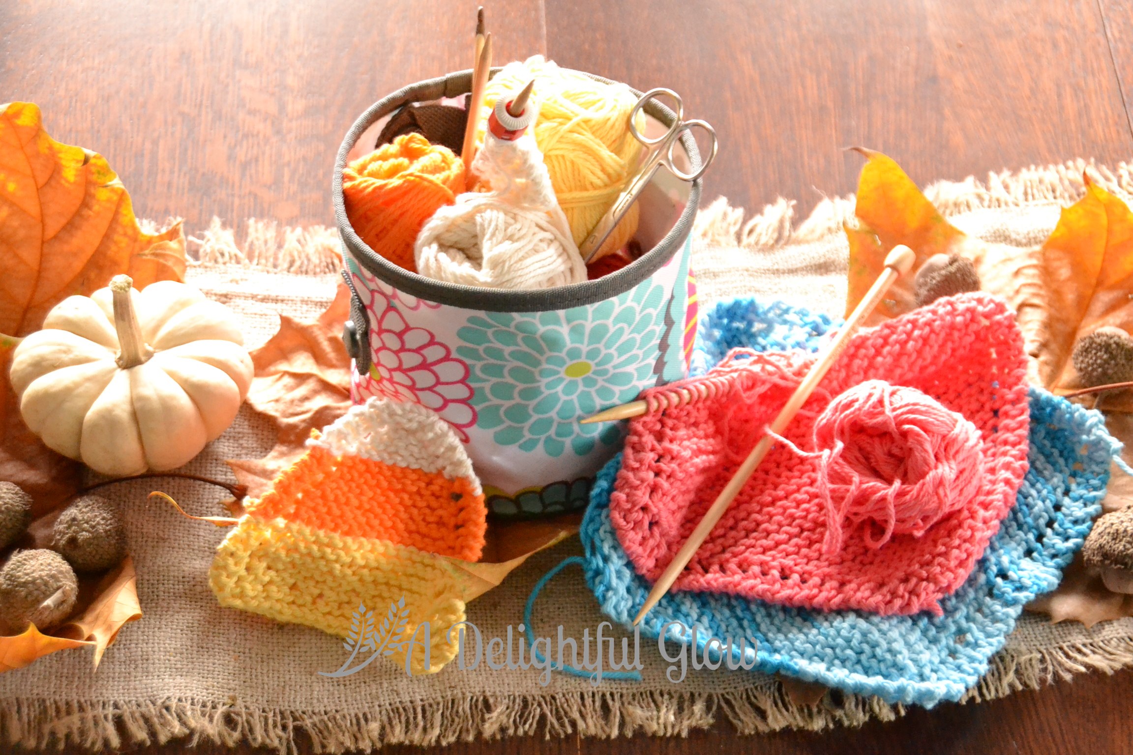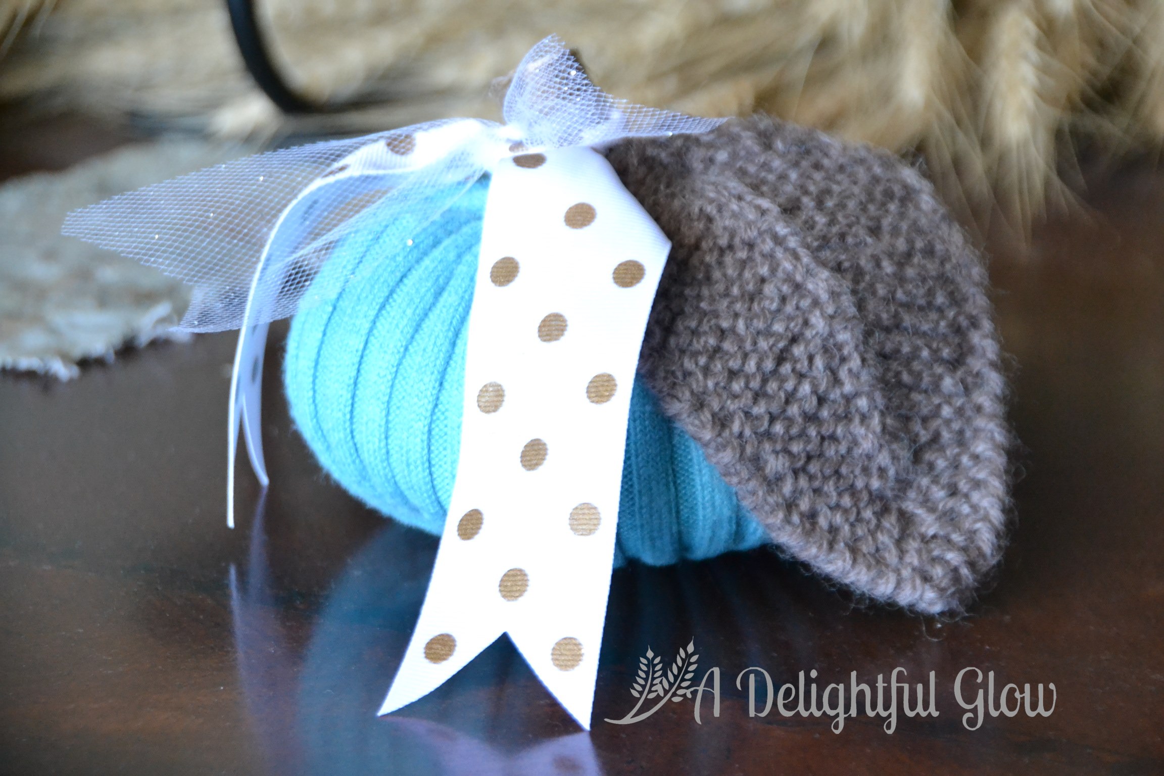 My friend and I crafted pumpkins from old sweaters. Here’s one of mine. I used one of my knitted leaves from last year on it. They were fun to make and quite simple.