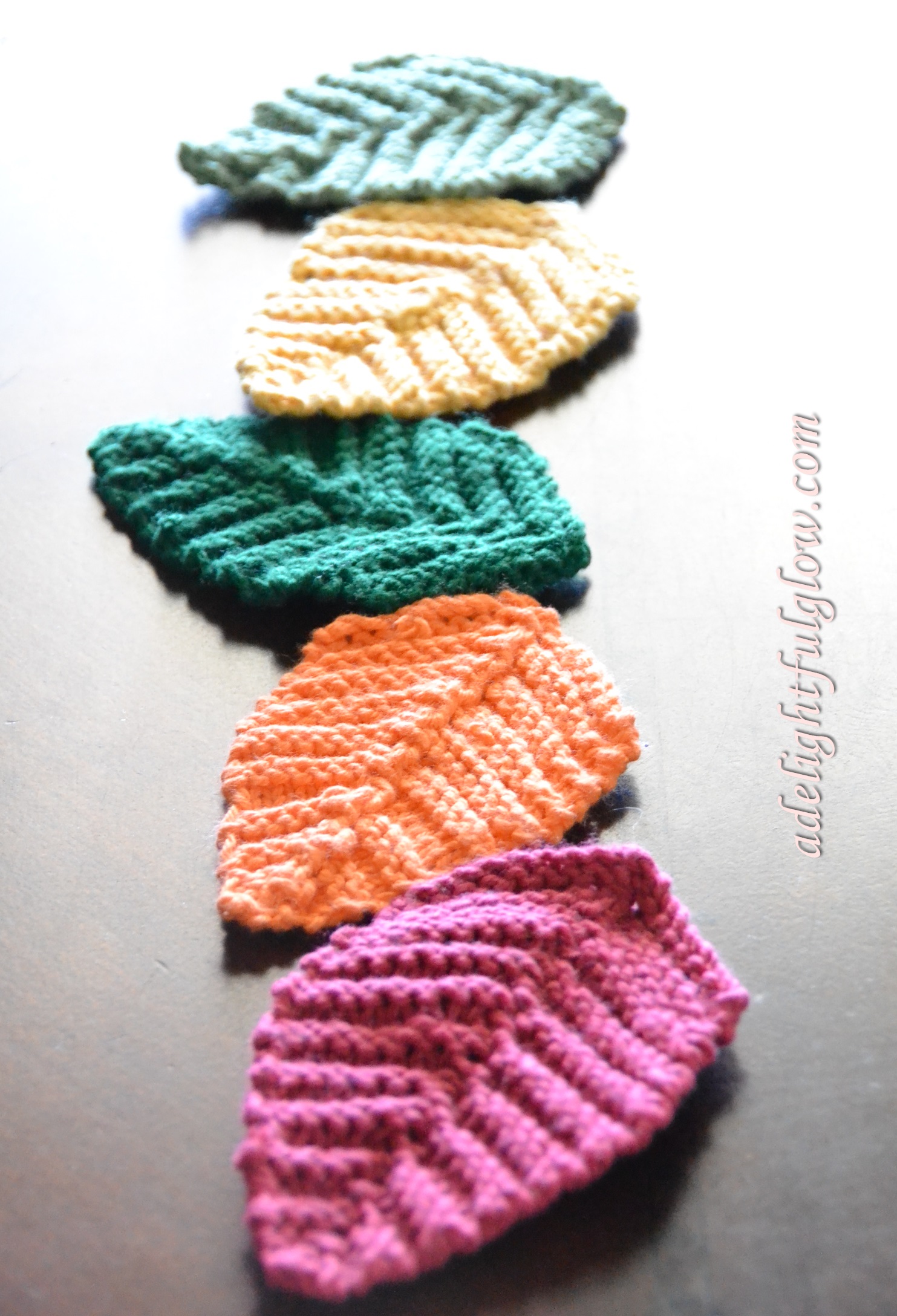 Those knitted leaves are so gorgeous. And the colors are so fun!
