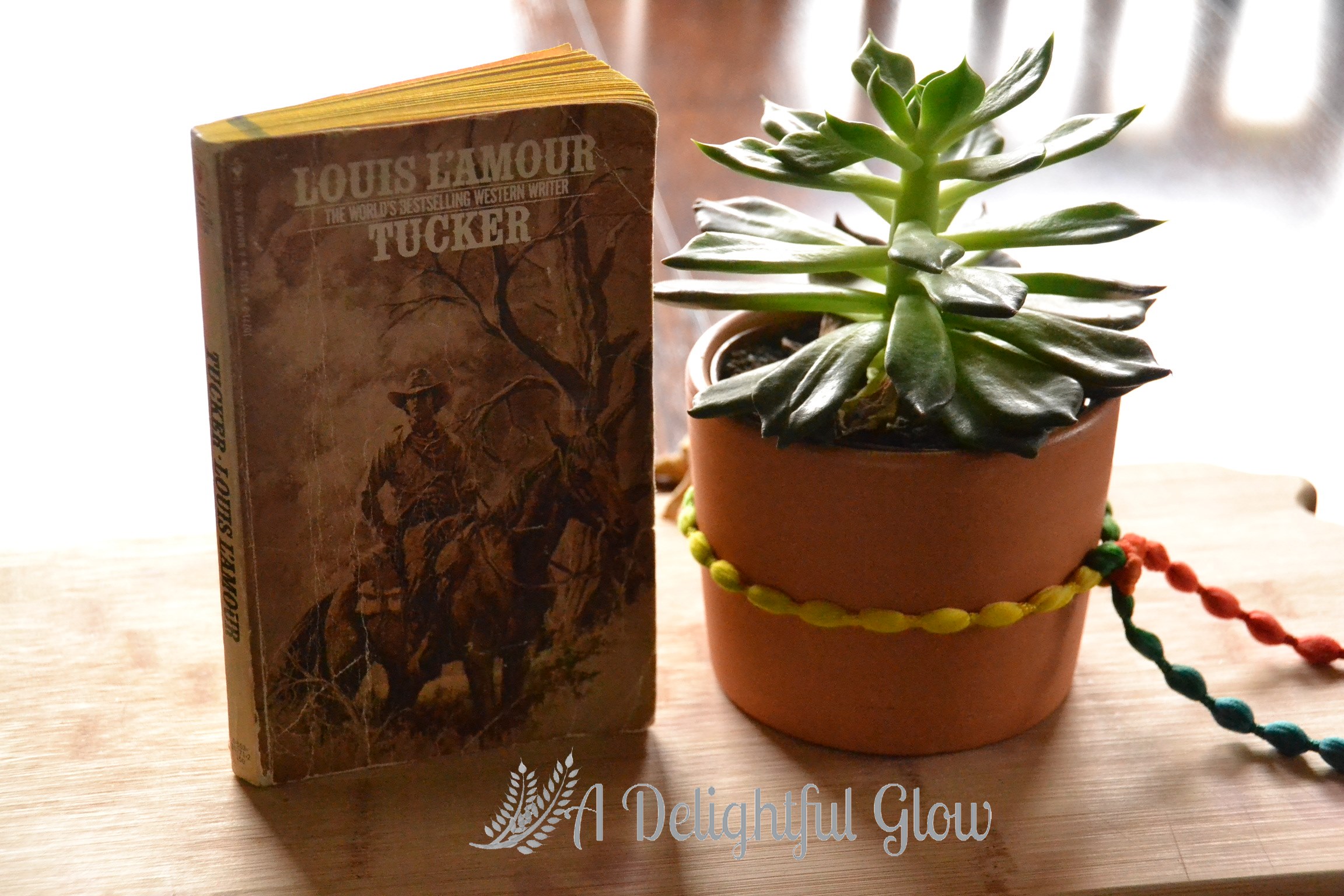 My man never loved to read, but he did read some Louis L’amour and Tucker happened to be one of his favorites. Now, our very own Tucker has his very own copy and this book is one of his faves as well. 🙂