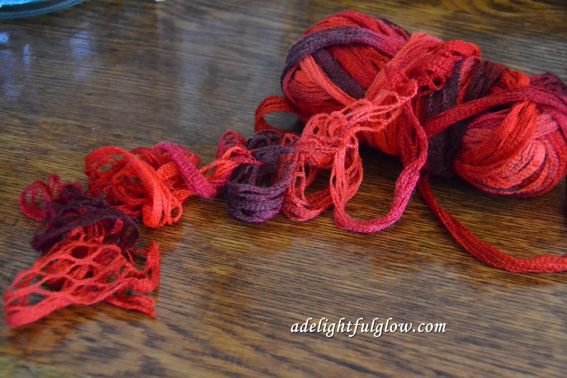 Renae started crocheting another ruffled scarf. The yarn for these is so pretty and frilly looking.
